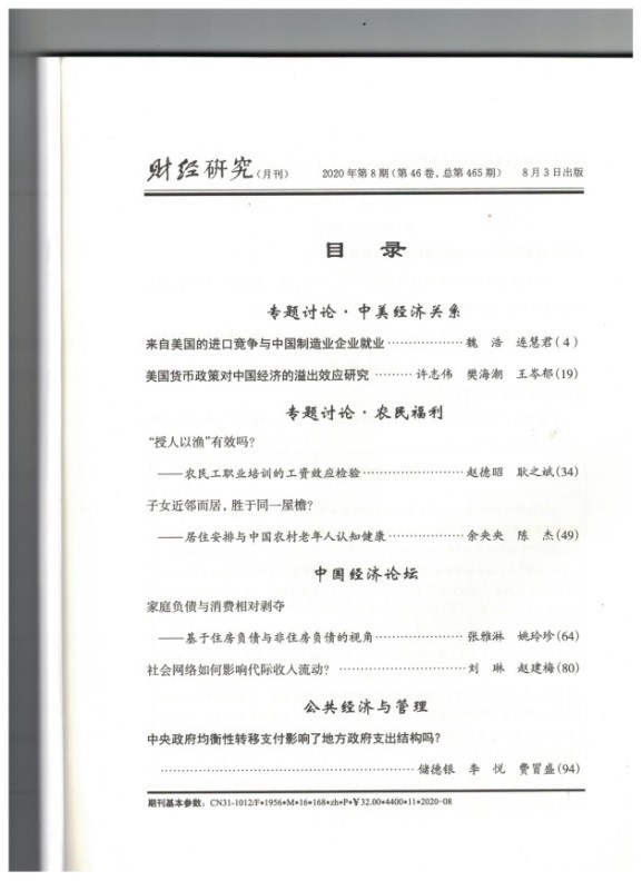 2020年8月,经济学权威期刊《财经研究》第8期刊发了我院赵德昭副教授与本科生耿之斌合作的论文《“授人以渔”有效吗?—农民工职业培训的工资效应检验》,这是我校在本科生高质量培养方面的具体体现和一项重要的学术成果。