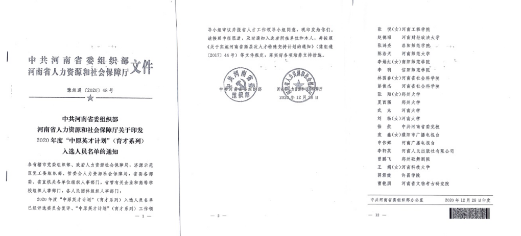 2020年12月28日,河南省委组织部、河南省人力资源和社会保障办公厅公布了2020年度“中原英才计划(育才系列)”人选名单,我院财政学教研室赵德昭副教授成功入选“中原青年拔尖人才(哲学社会科学和文化艺术类)”名单,同时被认定为河南省高层次C类人才。中原青年拔尖人才(哲学社会科学和文化艺术类)全省共入选20人,这也是我校青年教师首次荣获该项人才称号。