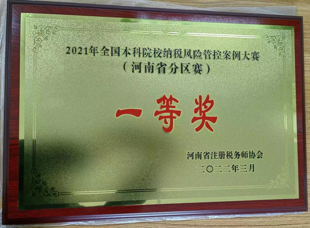 本次大赛形式为团体赛,分为分区赛和总决赛两阶段,分区赛采取线上远程非接触式方式进行。分区赛分为税法知识测试与案例分析两个环节。此次比赛老师和同学们高度重视,积极参赛,经过近一个月精心的准备,不仅以优异的成绩通过了税法知识测试,还完成了纳税风险管控案例的编写。参赛队员们凭借着凭借扎实的税务理论知识和严谨的逻辑能力,从36个分赛区、736支参赛队伍中脱颖而出,最终两支队伍分别以总成绩第三、第四荣获河南赛区一等奖,为学校赢得晋级全国总决赛的资格。