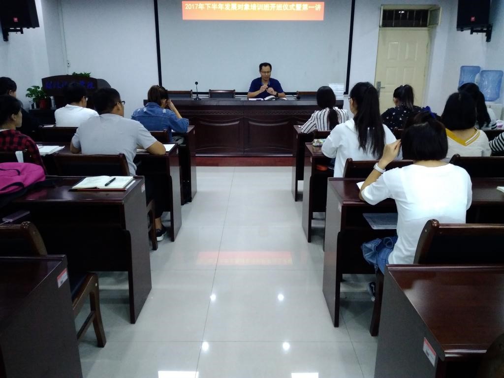 在随后的党课第一讲中,张建功对教材进行了分析,解释了为什么对发展对象进行短期集中培训等问题,并要求学员坚定理想信念、坚定共产主义信仰,自觉践行“两学一做”内容,学习党章及习近平总书记系列讲话内容,提高自我精神境界,树立正确学习观,在日常学习生活中起到模范带头作用。