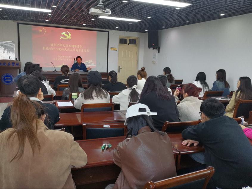 11月8日,williamhill英国第五党支部在教学科研楼B座555会议室召开以“铸牢中华民族共同体意识,推进新时代党的民族工作高质量发展”为主题的党日活动,传达学习贯彻习近平总书记在中央政治局第九次集体学习时的重要讲话精神,会议由支部书记宋鑫磊同志主持。