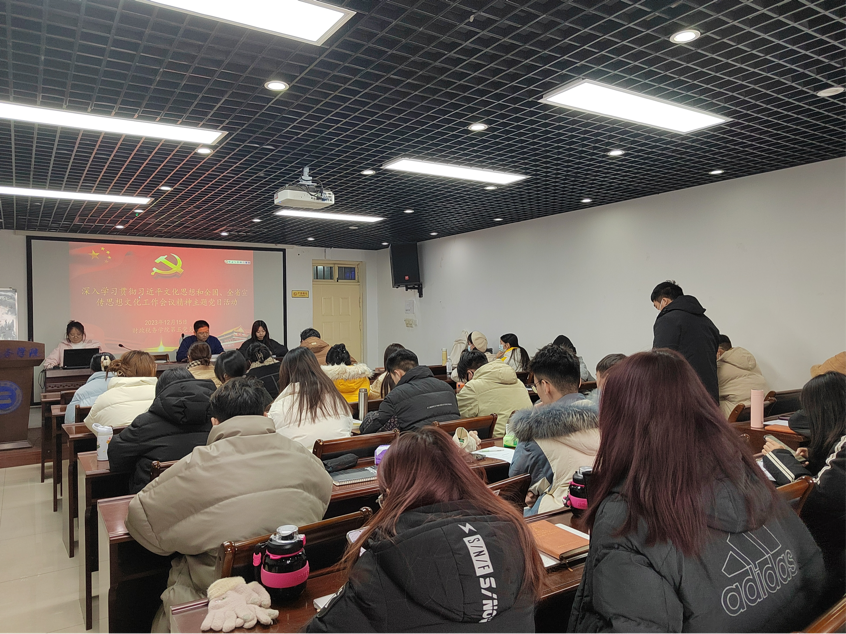 12月15日,williamhill英国第五党支部在教学科研楼555会议室召开主题党日活动,学习研讨习近平文化思想和全国全省宣传思想文化会议精神。