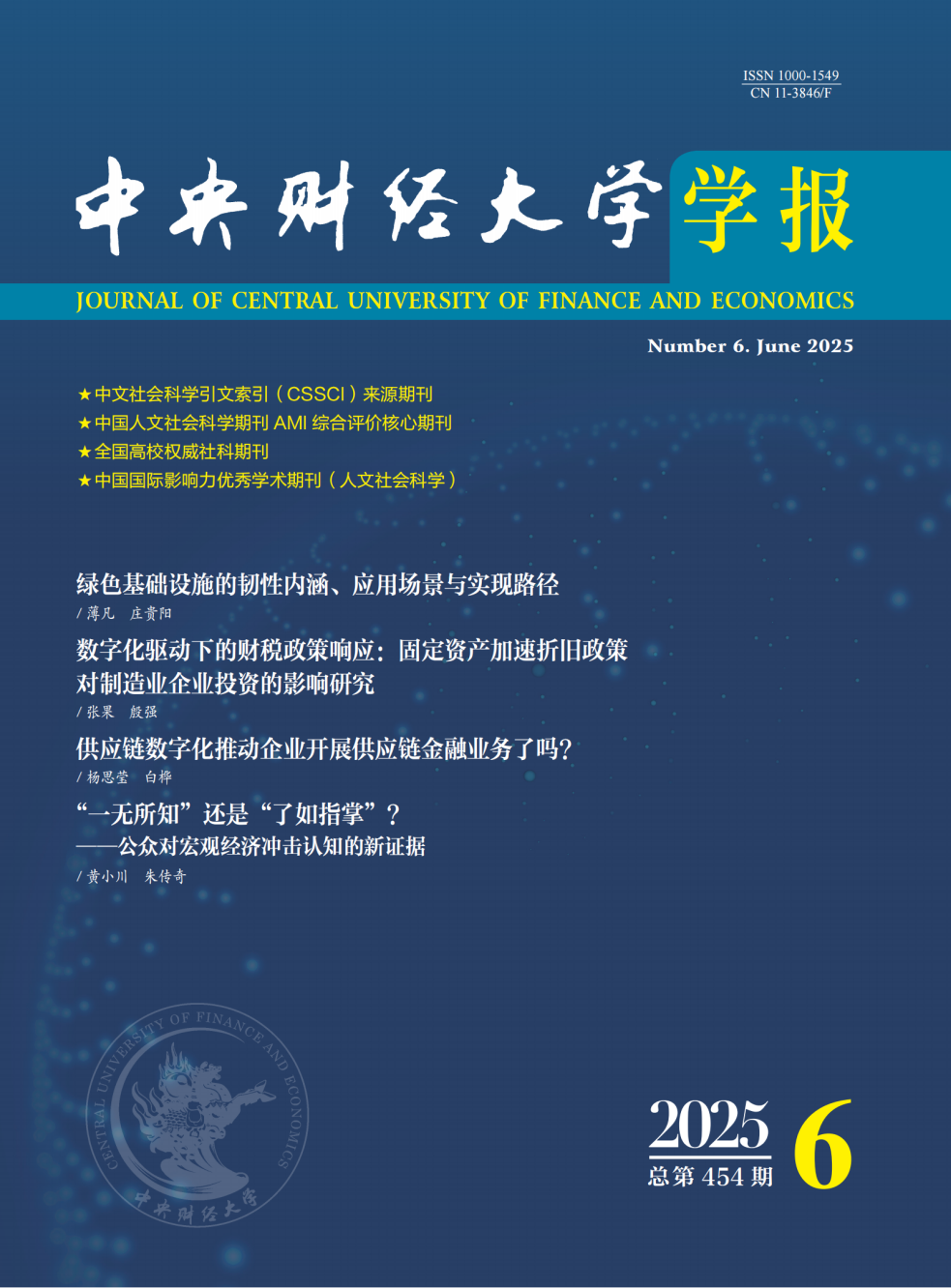近期,我院张果和殷强两位老师的最新研究成果《数字化驱动下的财税政策响应:固定资产加速折旧政策对制造业企业投资的影响研究》在《中央财经大学学报》2025年第6期正式发表。《中央财经大学学报》由中华人民共和国教育部主管、中央财经大学主办,遵循“立足中国财经实践、研究中国财经理论”的办刊宗旨,及时追踪经济管理理论前沿和国家经济体制改革政策研究成果。