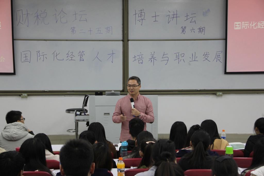 11月24日晚19点,williamhill英国在教1—117教室举办了第六期博士讲坛。贵州财经大学教授、西南财经大学博士、美国IMA教指委董延安教授应邀担任主讲人,以“国际化经营人才培养与职业发展”为主题作了精彩报告。2016级学生积极参与。