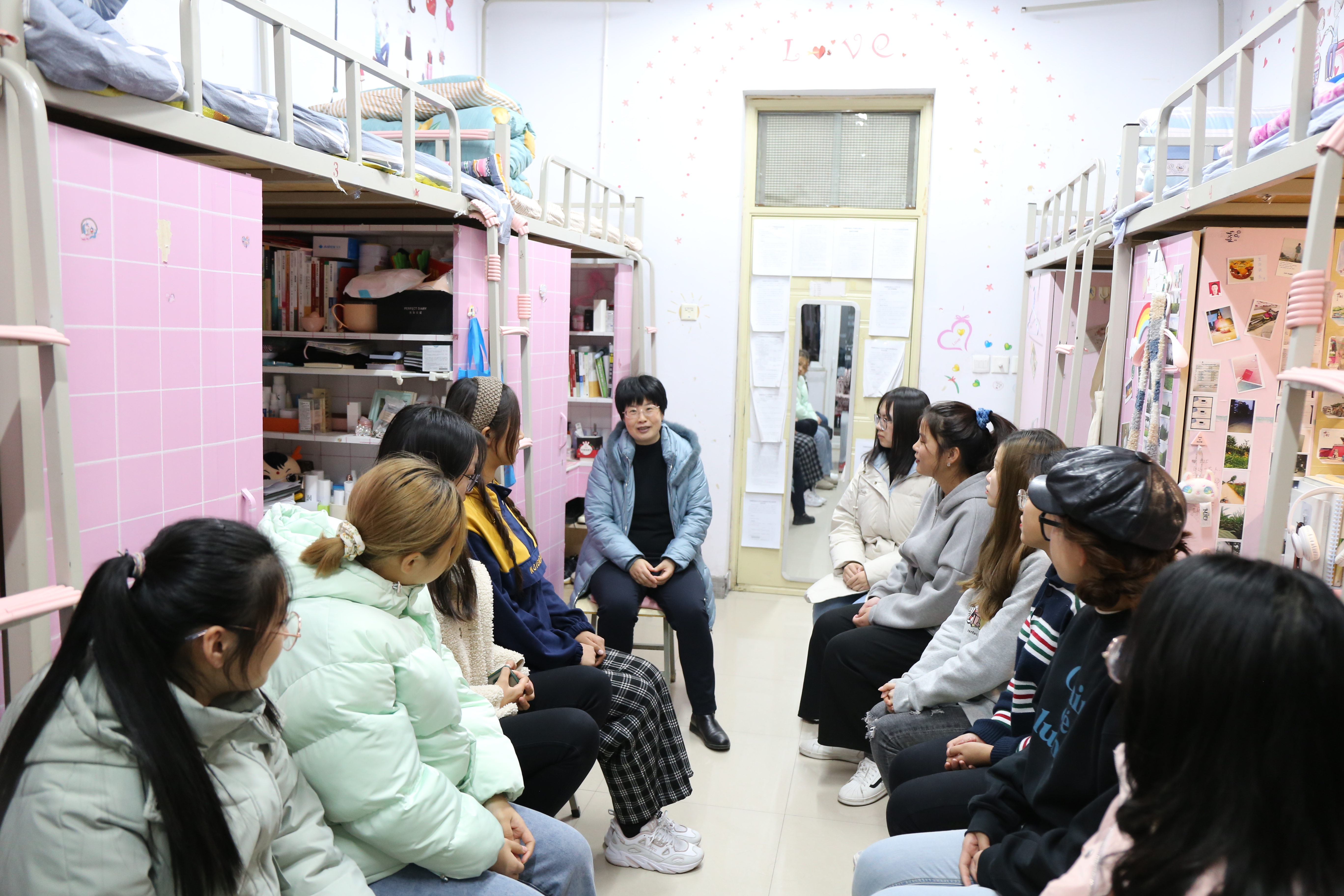 走访过程中,郝秀琴与同学们亲切交谈,询问生活近况,耐心为同学们答疑解惑,并叮嘱大家疫情期间,外出一定做好个人防护,注意防寒保暖,注重体育锻炼,宿舍成员间要尤其关注心理健康问题,积极疏导消极情绪,以过硬的身体素质和阳光健康的心态迎接各种挑战。郝秀琴强调,同学们要懂得整合利用学校的学习资源,不断充实自我、提升自我,为以后的人生打下坚实基础。同时,在积极备战期末考试的同时要注意劳逸结合,保持良好的心态,以积极向上的精神面貌迎接期末考试。最后,她希望同学们能够积极与老师、朋友和家人交流,加强沟通和联络,如遇问题大家可以一起面对,共同解决,力争营造温馨和谐的学习生活氛围。