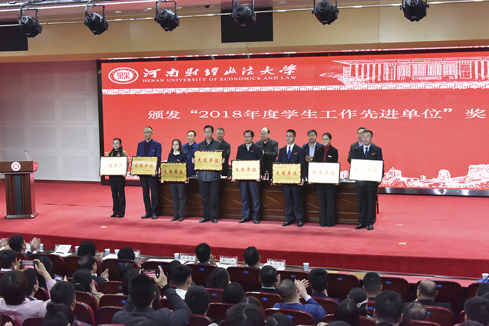 在威严的国歌声中表彰大会拉开了帷幕。副校长赵传海宣读了表彰决定。williamhill英国荣获2018年度“学生工作先进单位”荣誉,学院党委副书记张建功上台领奖。