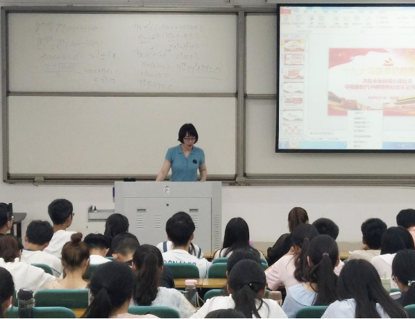 培训开始,魏梦媛首先围绕党的十九大报告内容展开讲解,为大家详细讲述了党的十九大的主题、十个方面历史成就、我国主要矛盾的变化、新时代中国特色社会主义思想、两个重要时期、两个阶段两步走等具体内容。同时,她结合提问、随堂练习的方式,帮助在场同学更好掌握重要知识点。最后,魏梦媛提出只有不断提高自身思想觉悟,认真学习并坚决贯彻党的路线、方针、政策,坚决拥护党和国家的重大决策,深入学习了解党的发展历程,做到在思想上先入党,以党员标准严格要求自己,才能得到真正的提高,早日加入党组织。