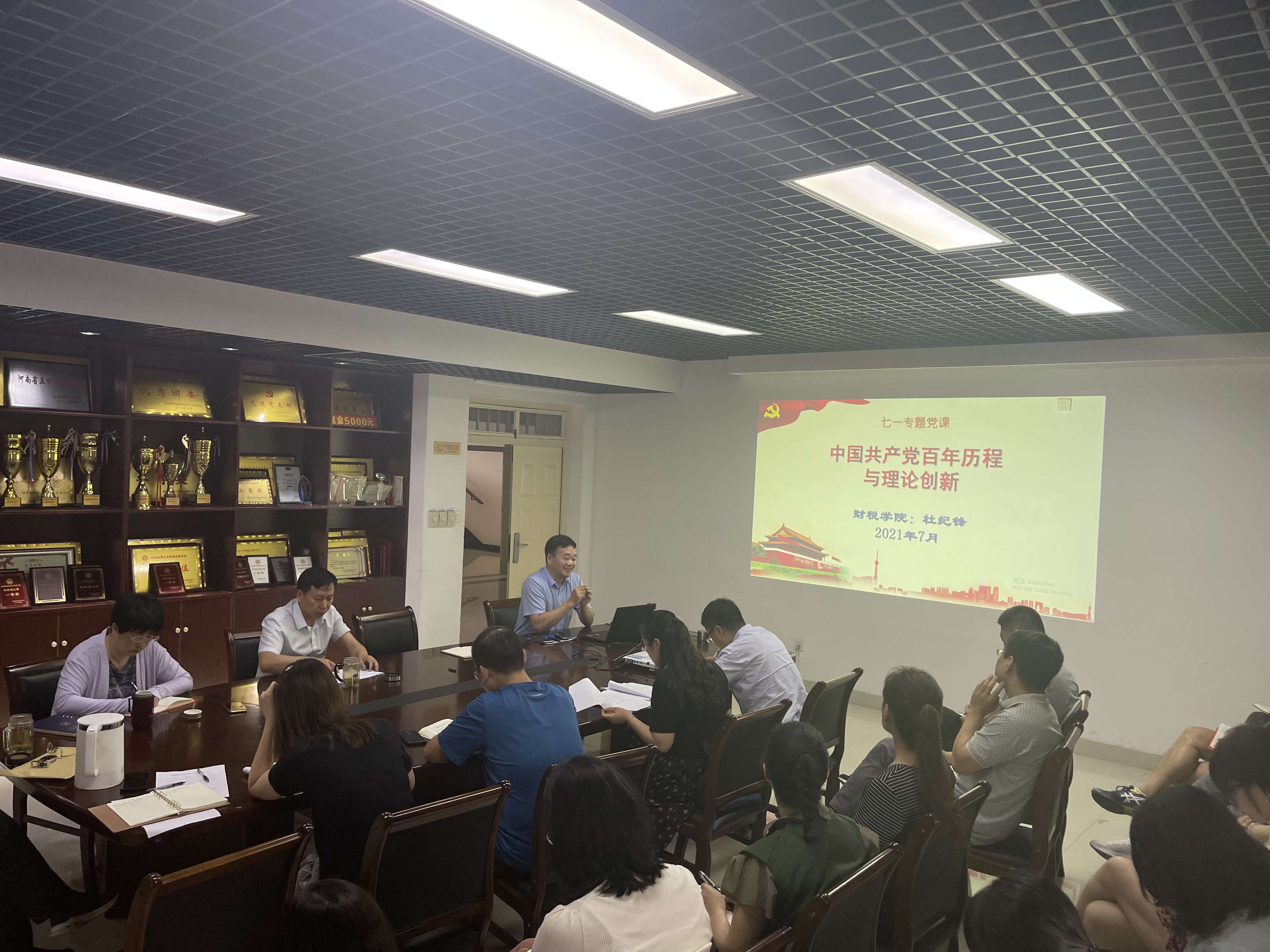 7月10日,为认真学习习近平总书记在庆祝中国共产党成立100周年大会上的重要讲话精神,推动党史学习教育走深走实,学院党委书记杜纪锋以《中国共产党百年历程与理论创新》为题,为全体教工党员讲授专题党课,学院全体党员参加。