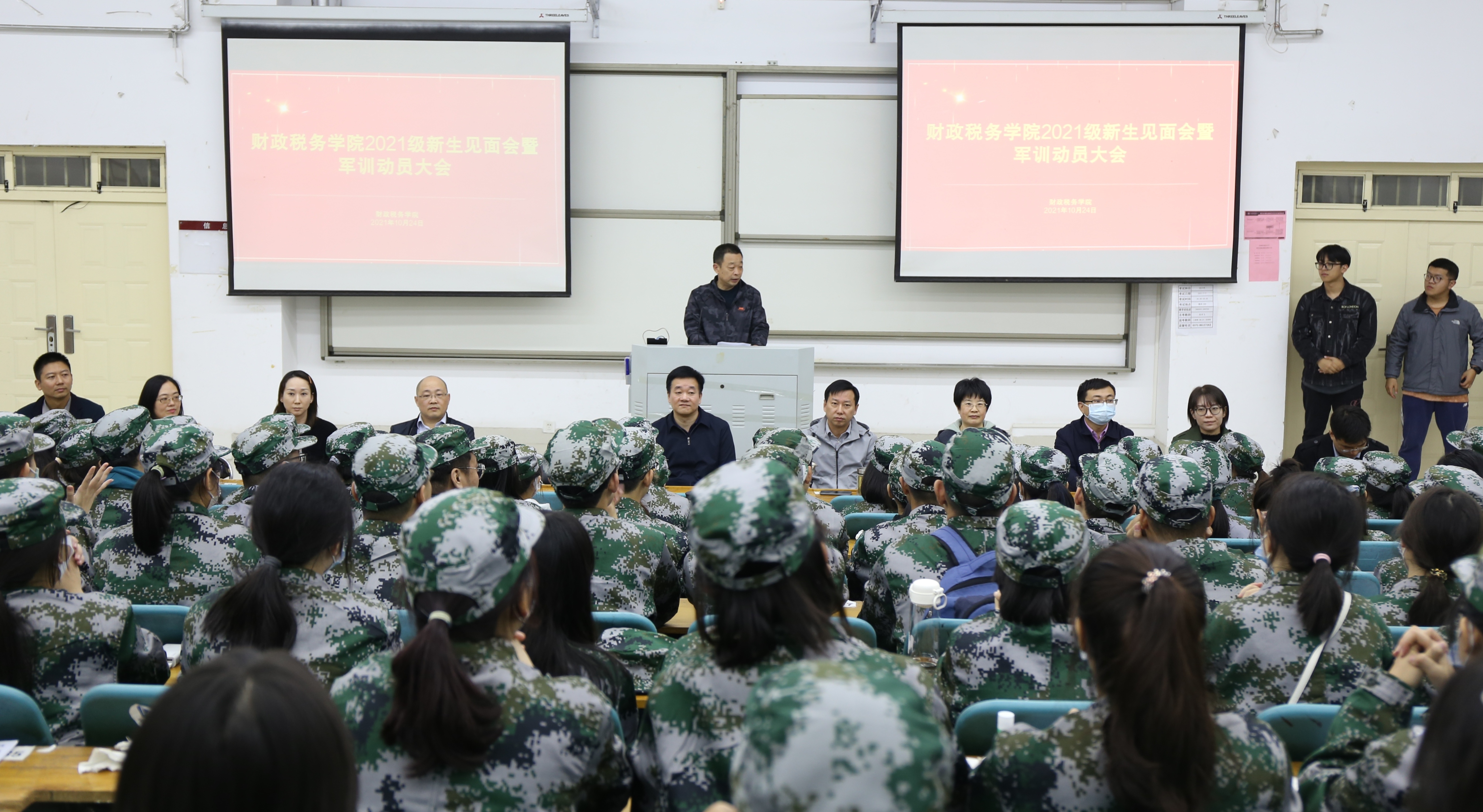 10月24日晚,williamhill英国于教科楼209教室召开2021级新生见面会暨军训动员大会。学院领导杜纪锋、殷强、王磊军、郝秀琴、何晓光、梁长来出席会议,全体专兼职辅导员及2021级全体新生参会。会议由院党委副书记王磊军主持。