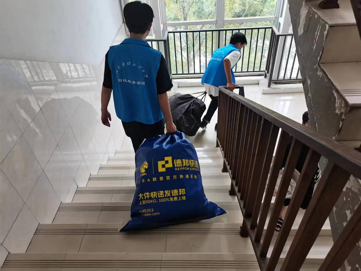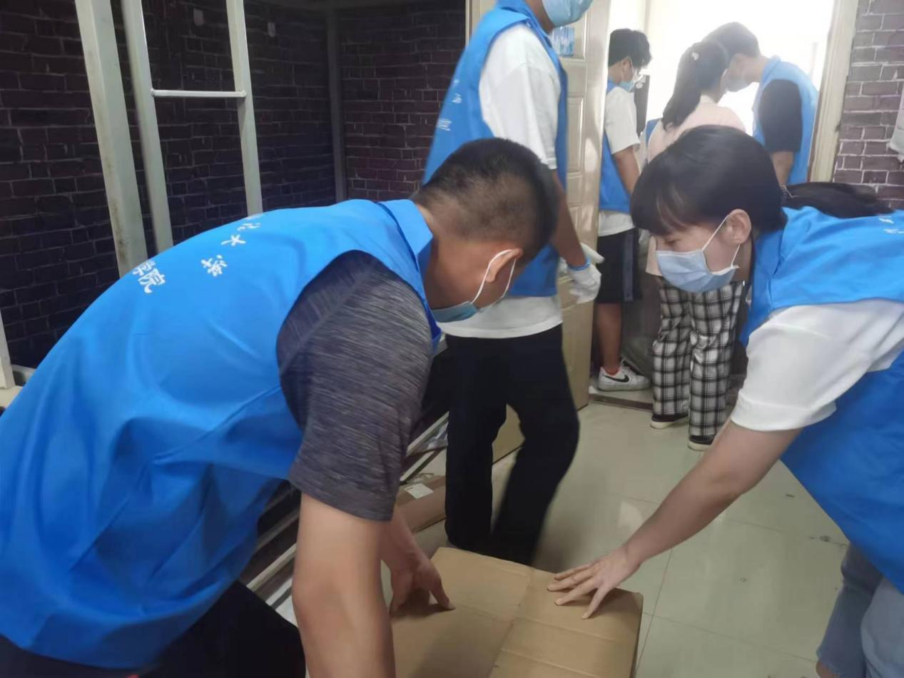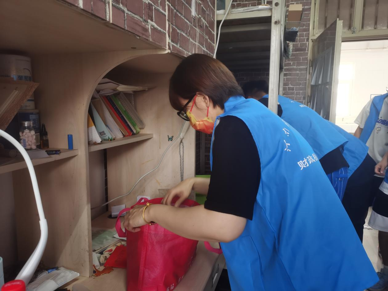 打包完成后,大家还细心地在行李上写上了学生的姓名和住址,避免在运送的过程中出现差错。宿舍内空间较为狭小,天气较为炎热,行李打包起来也格外费时费力,不一会老师们已经汗流浃背了,但工作起来仍然干劲十足,毫无怨言。