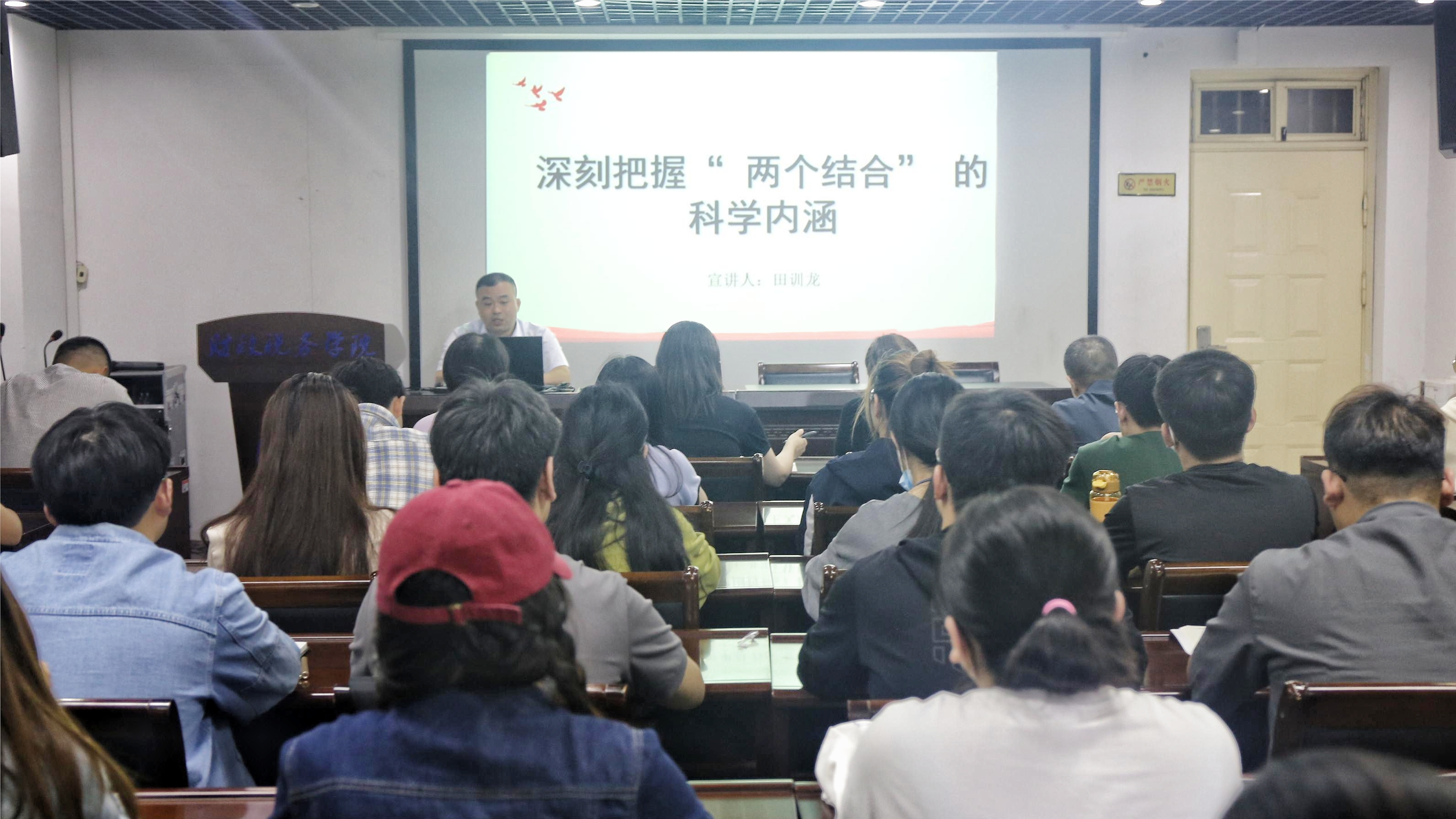 田训龙以《深刻把握“两个结合”的科学内涵》为题,围绕什么是“两个结合”、为什么要“两个结合”、如何实现“两个结合”三个方面展开详细论述。他指出:“两个结合”的提出,是对党的理论的又一重大创新,开创了我们党理论创新的新格局,意义非常重大。这是对历史的深刻总结,是对规律的深刻揭示,也是对未来理论发展的正确引领,代表了中国共产党人新的觉悟、新的认识高度,也体现了我们中国共产党和中国人民强烈的文化自信与文化自觉。我们要深刻把握“两个结合”的科学内涵,要理解把马克思主义基本原理同中国具体实际相结合、同中华优秀传统文化相结合,是及时回答时代和实践提出的重大问题、始终保持马克思主义蓬勃生机和旺盛活力的根本途径。“两个结合”做得越好,理论创新之源就越丰富,理论创新之力就越强劲,理论创新成果就越能为人民群众所掌握。