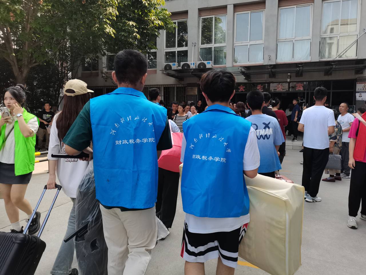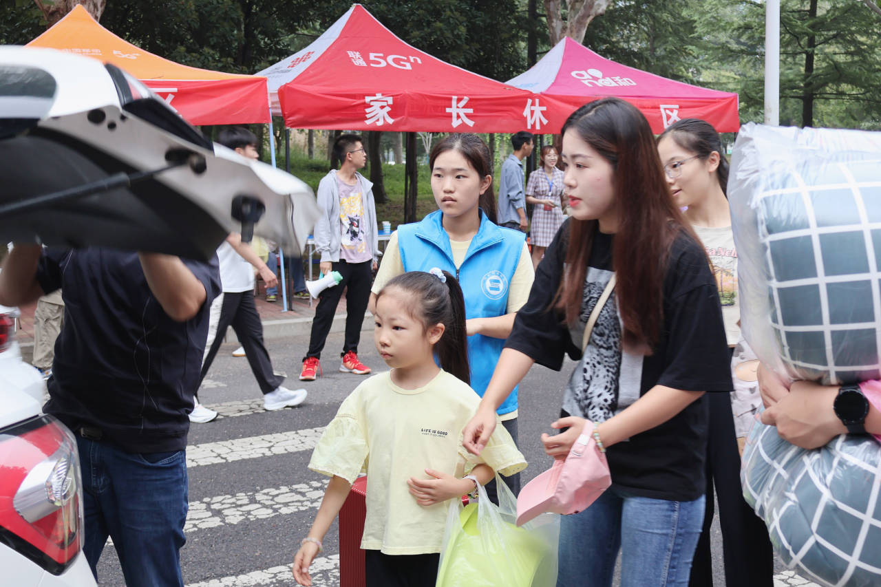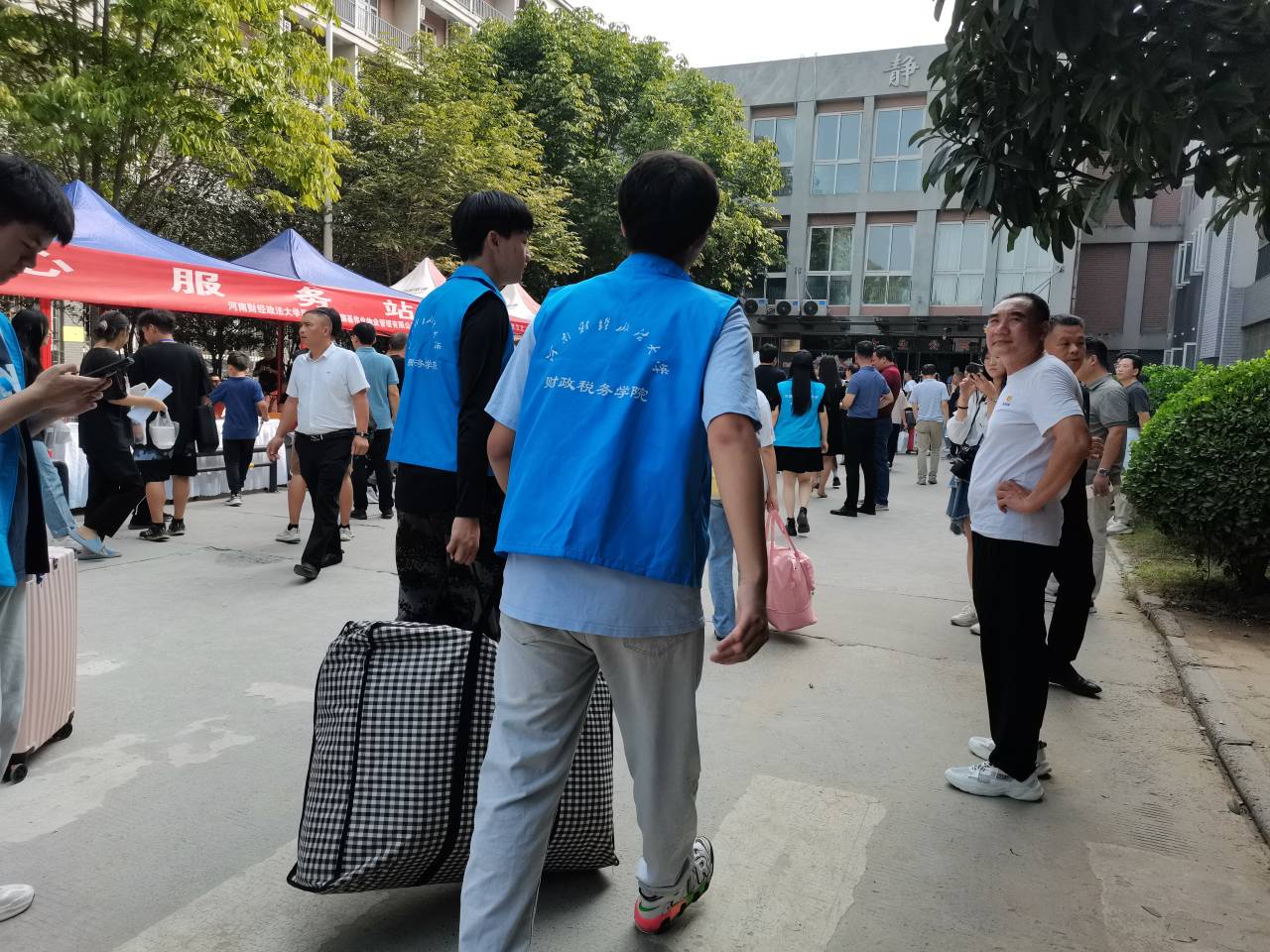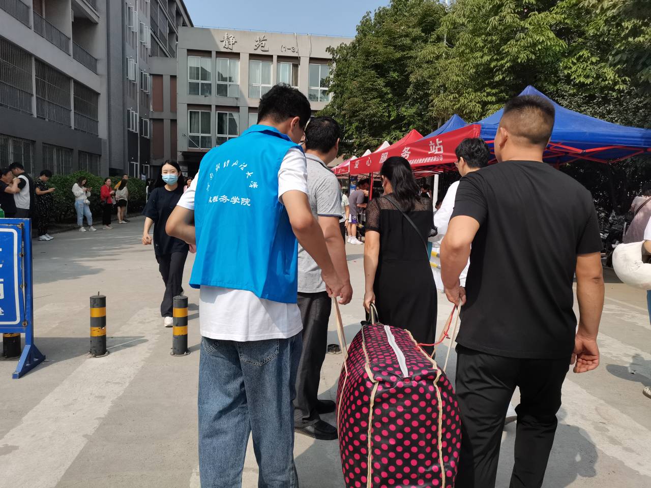 晨曦初露,学院迎新志愿者的身影便活跃在校园各处迎新接待点,第一时间为2023级新生送去暖心服务。志愿者们积极帮助新生搬运行李、指引线路、解答疑惑,用耐心的陪伴和热情的讲解为远道而来的学子们提供暖心服务,保障每一名新生顺利入学报到的同时,也让他们充分感受到来自学院的温暖与关怀。报到现场,学院领导老师与家长们亲切交流,表达对新生的热烈欢迎与深切期望,如沐春风的关怀驱散了新生们初来学校的不安与不适,为新生们尽快融入学院注入“强心剂”。