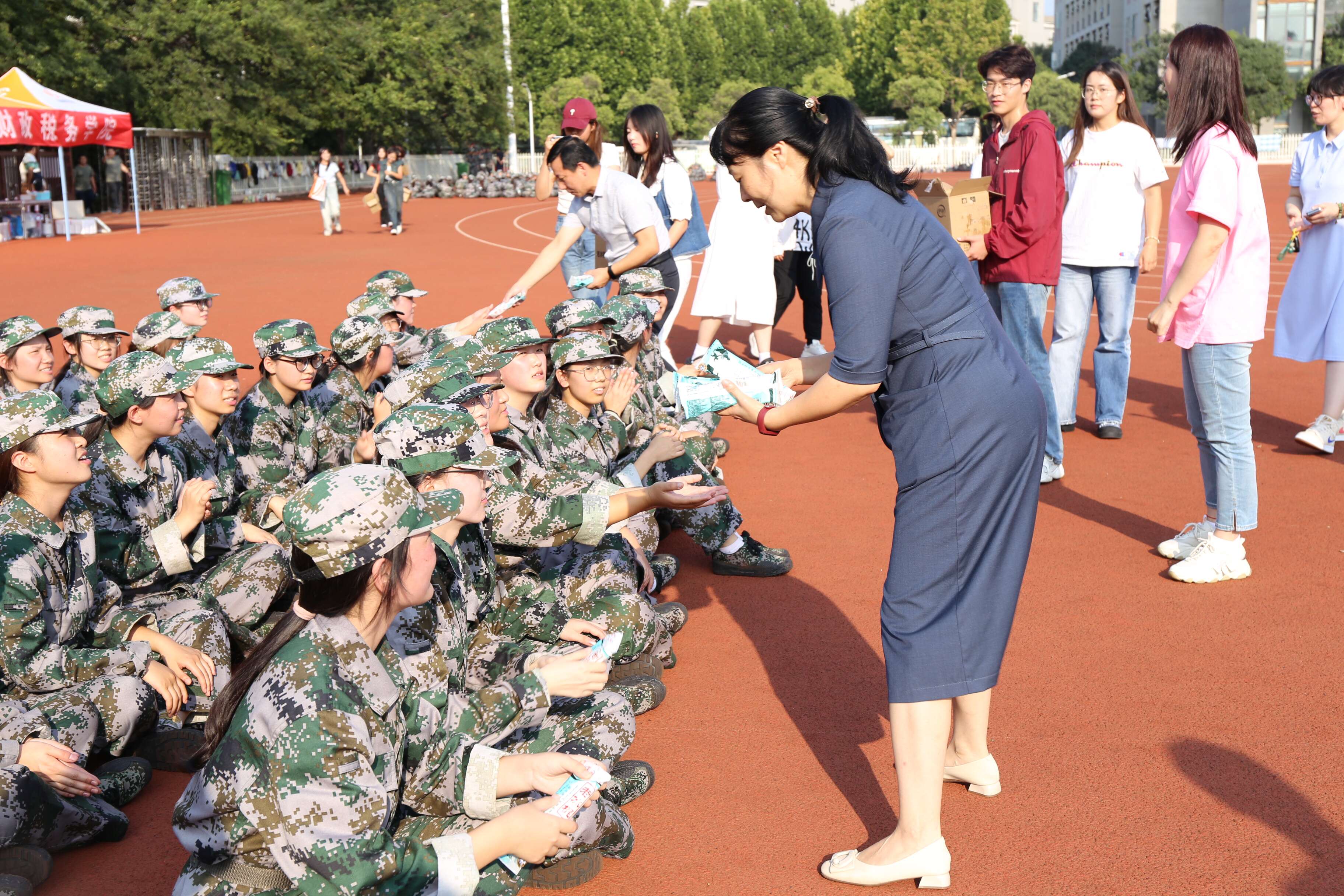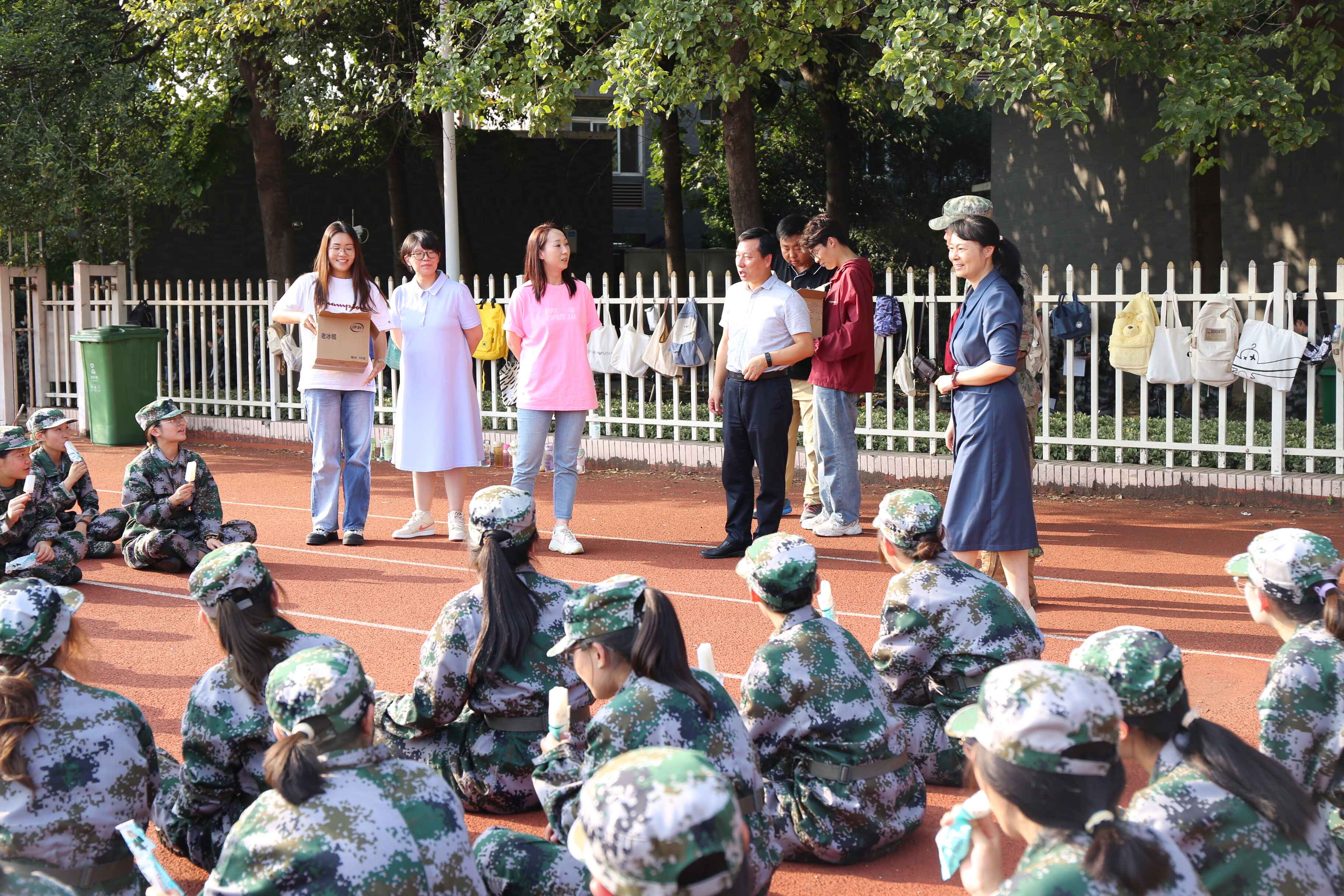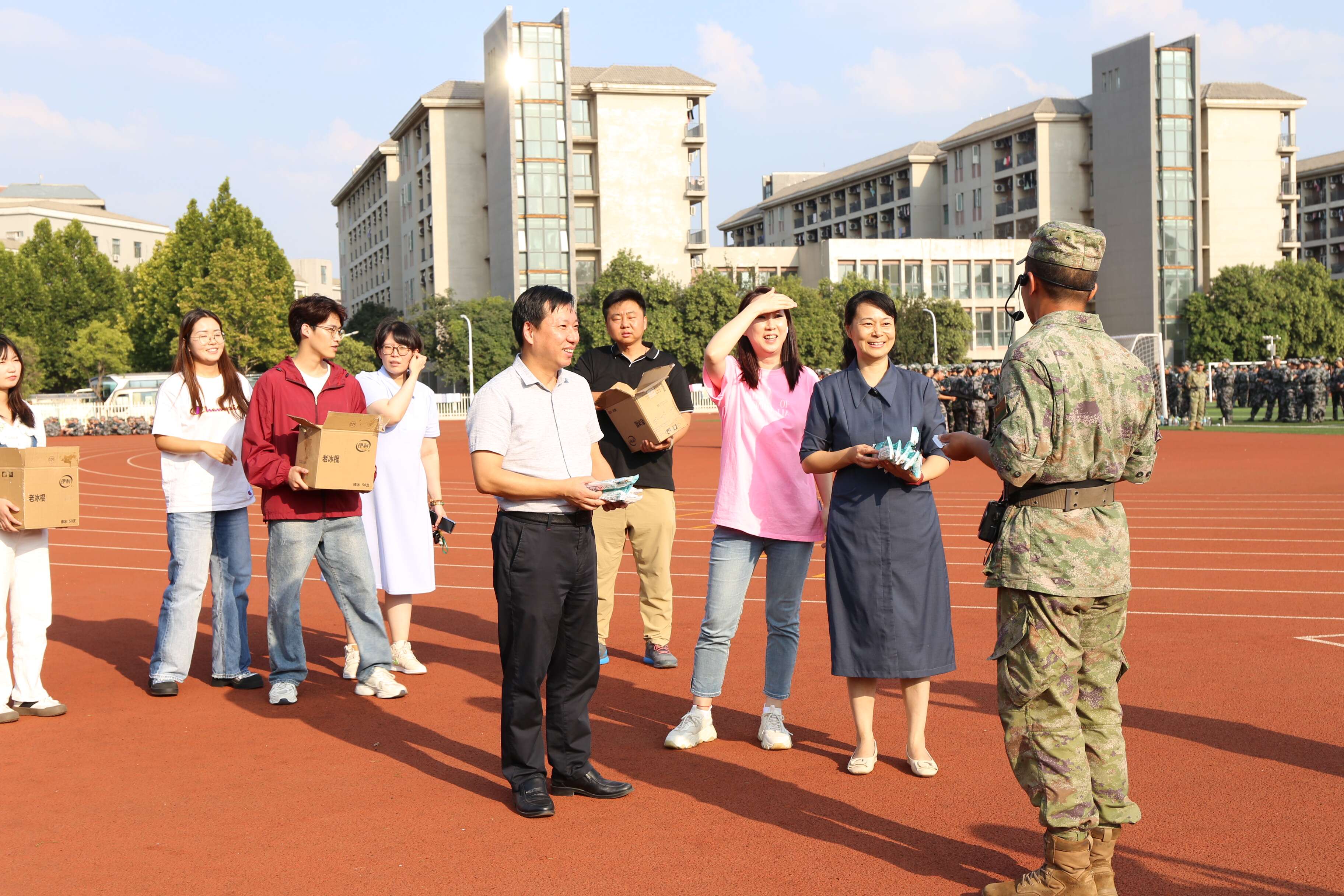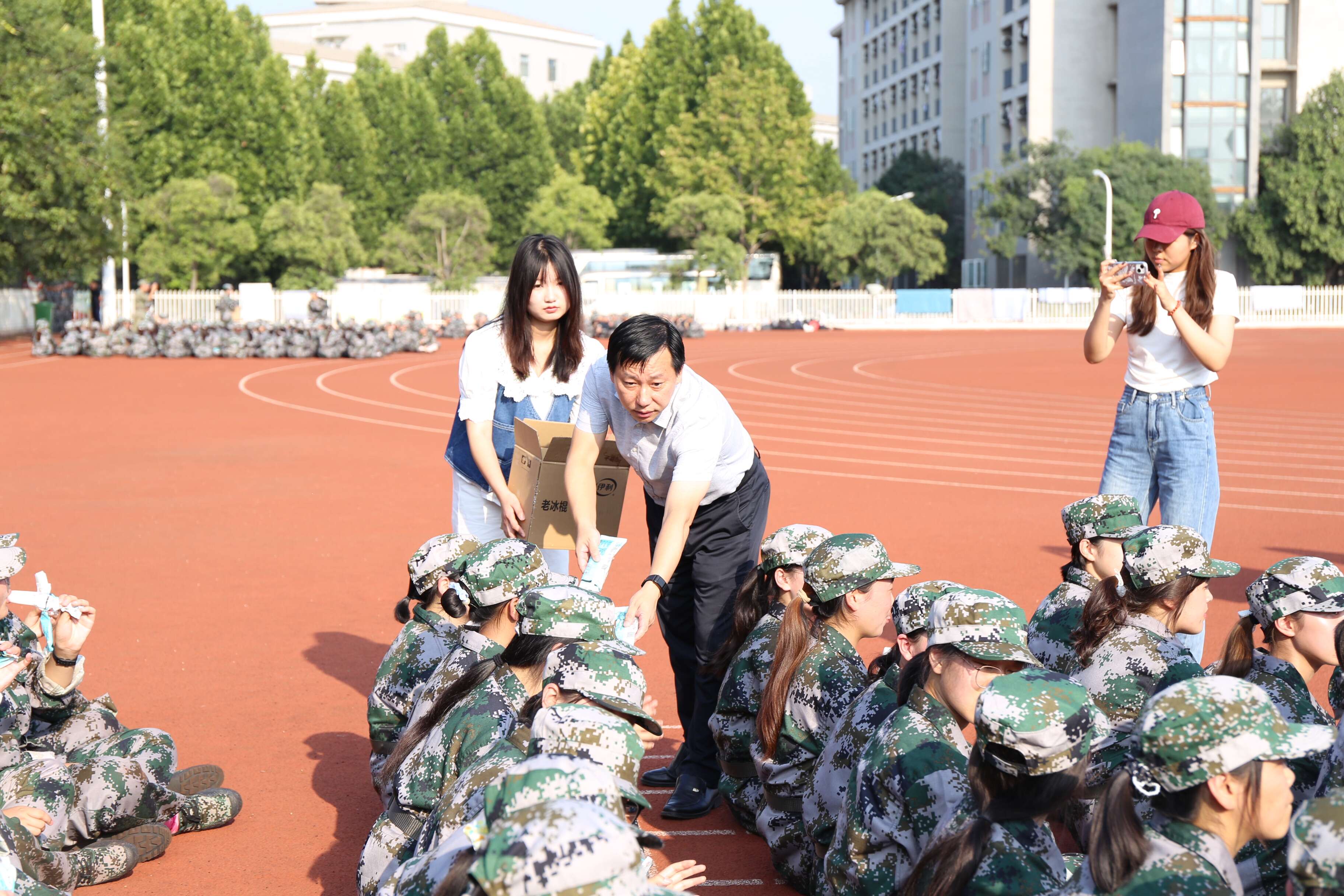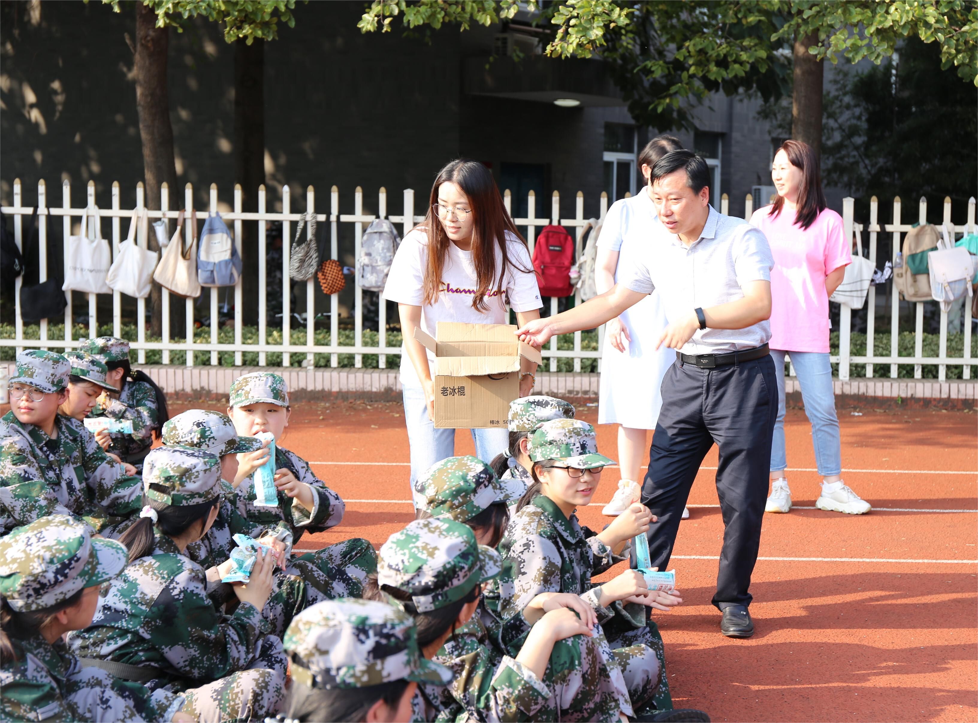 随后,学院领导老师为全体参训同学分发冰糕,为同学们送去夏日清凉,驱散训练的疲倦。同学们欢欣雀跃地接过慰问,纷纷表示深受鼓舞,对接下来的军训生活充满期待,也必将全力以赴、认真训练,不负青春韶华、不负师长期许。