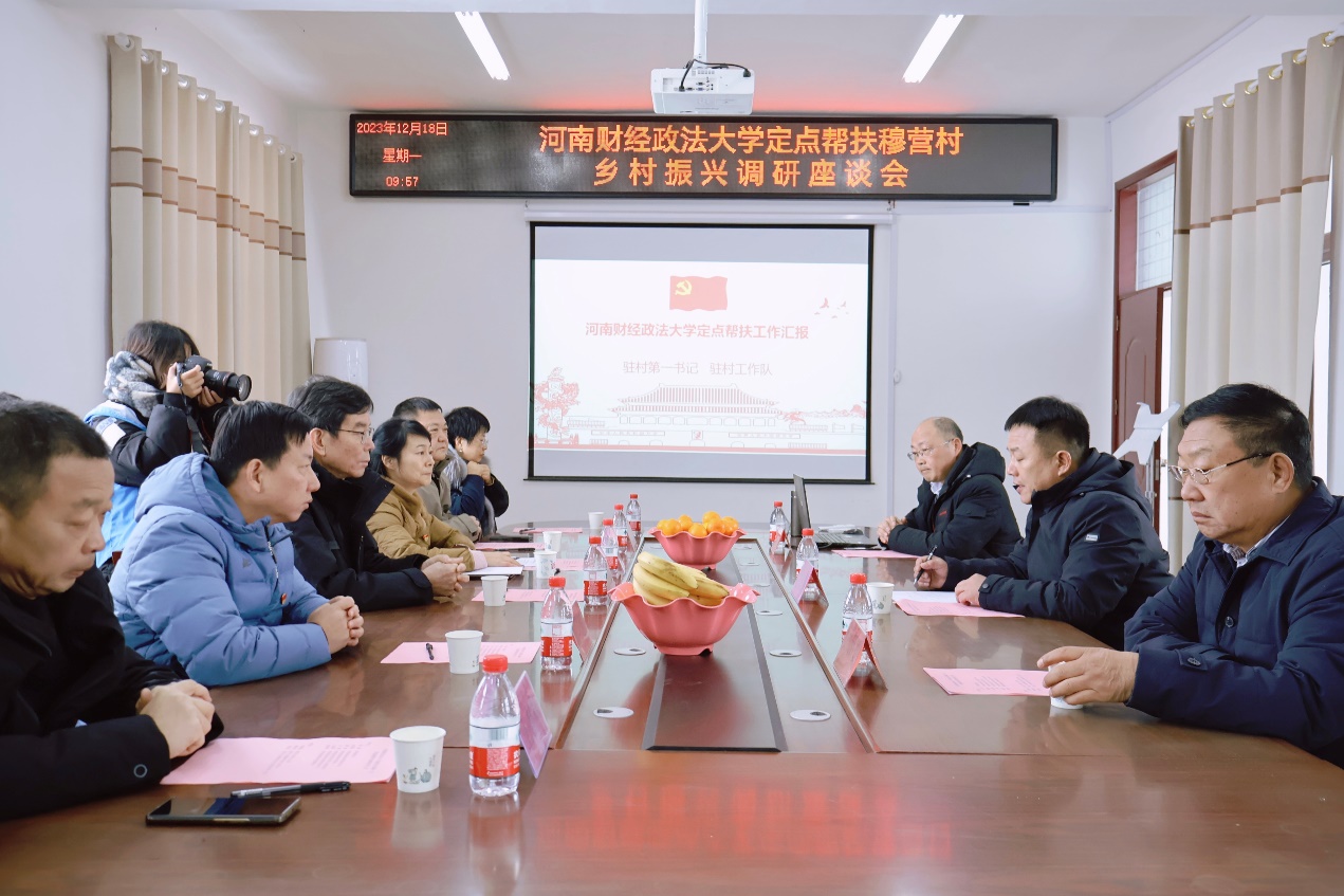 在穆营村党群服务中心,校地双方召开了座谈会。会上,滑县万古镇人大主席顾建国介绍了当地基本情况及经济社会发展取得的成绩,向学校接续选派驻村干部助力当地发展表示衷心感谢。学校驻村第一书记何晓光和穆营村党支部书记穆新省进行了工作汇报。