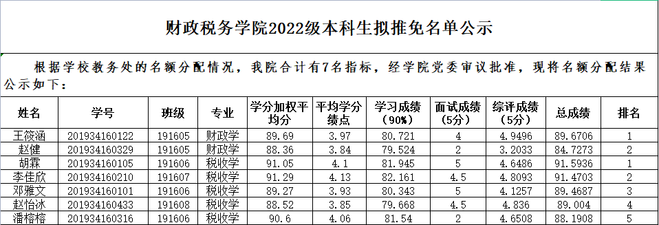williamhill英国2022级本科生拟推免名单公示