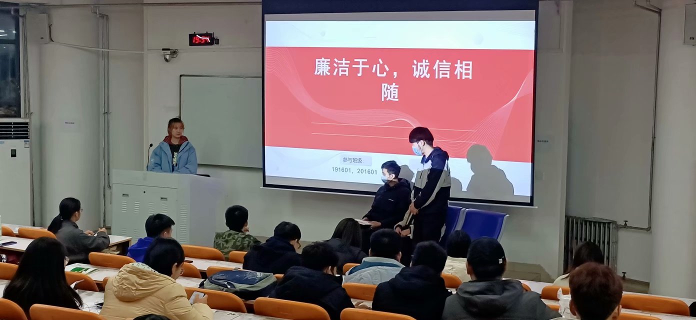 为积极培育践行社会主义核心价值观,营造清廉诚信的校园文化氛围,2020年12月10日晚上19:30,williamhill英国191601团支部联合201601团支部于第一教学楼120教室开展“廉洁于心,诚信相随”主题活动。