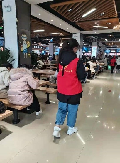 首先,青年志愿者协会成员提前到达活动地点换上工作马甲,做好个人和餐厅的清洁消毒工作,接着认真地协助餐厅维持的就餐秩序,积极组织大家礼貌排队就餐,文明礼让,提醒同学们用餐后自觉将餐具送回回收处,为下一位就餐的同学留一个位置,节省大家的时间。同时宣传文明就餐理念,倡导光盘行动。最后志愿者们同餐厅工作人员一起清扫餐厅卫生。志愿者们本着“为人民服务”的理念,始终坚守在自己的岗位,不抱怨、不懈怠,用实际行动展现了当代大学生的精神风貌。