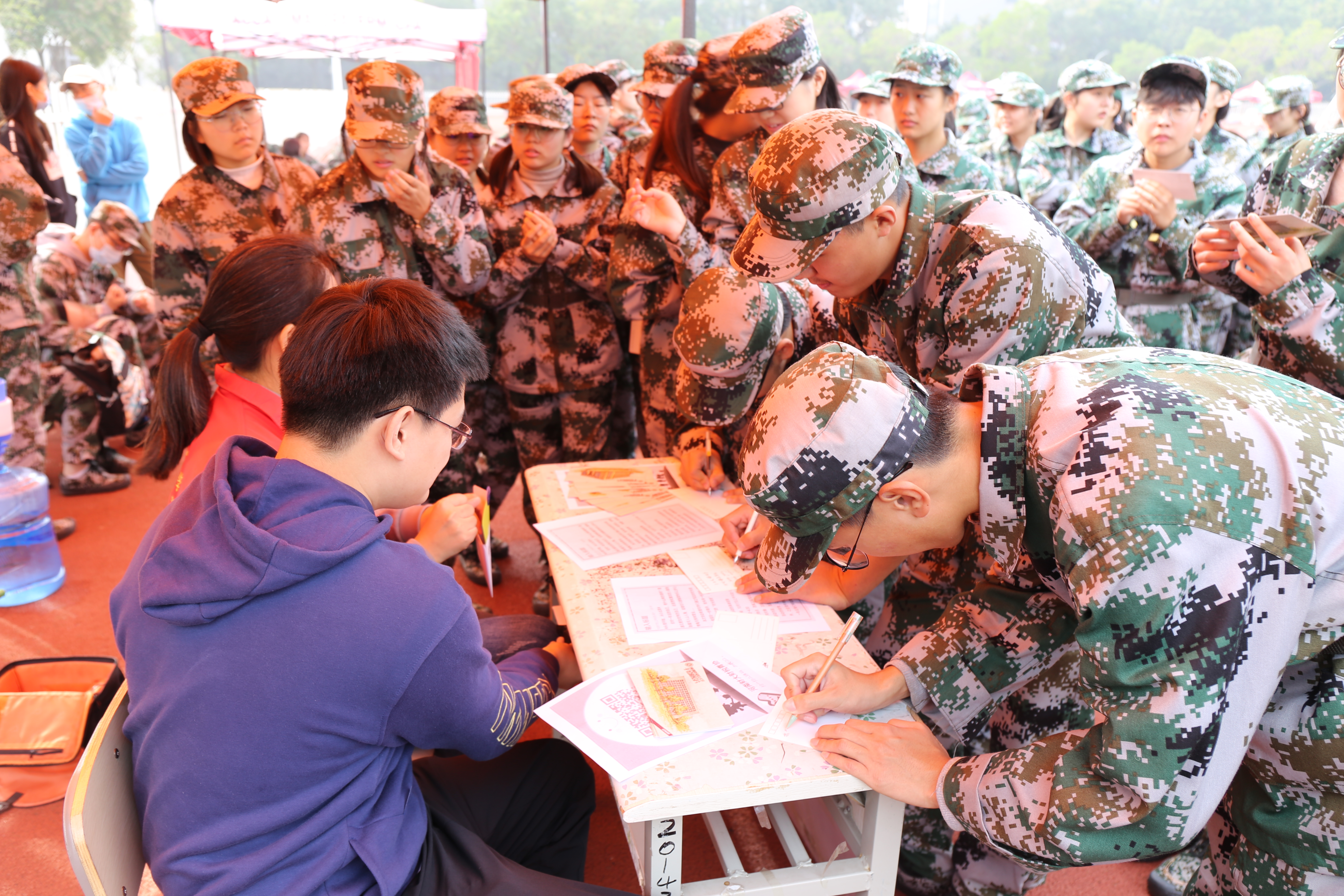 活动开始前,学院青年志愿者协会利用官微、官博等平台进行宣传,热情向“小耳铃”们介绍本次活动,同时为提高活动效率,活动特别安排在20级新生军训前,给同学们提供便利。活动正式开始后,活动学生工作人员向参与活动的“小耳铃”们发放学校特制的明信片,引导同学们把愿望和规划写在明信片上,交由学院封存保管,并于第二年交还大家。围在活动场地前青春洋溢的“小耳铃”们积极参与活动,充分展示了当代青年良好的青春风貌。