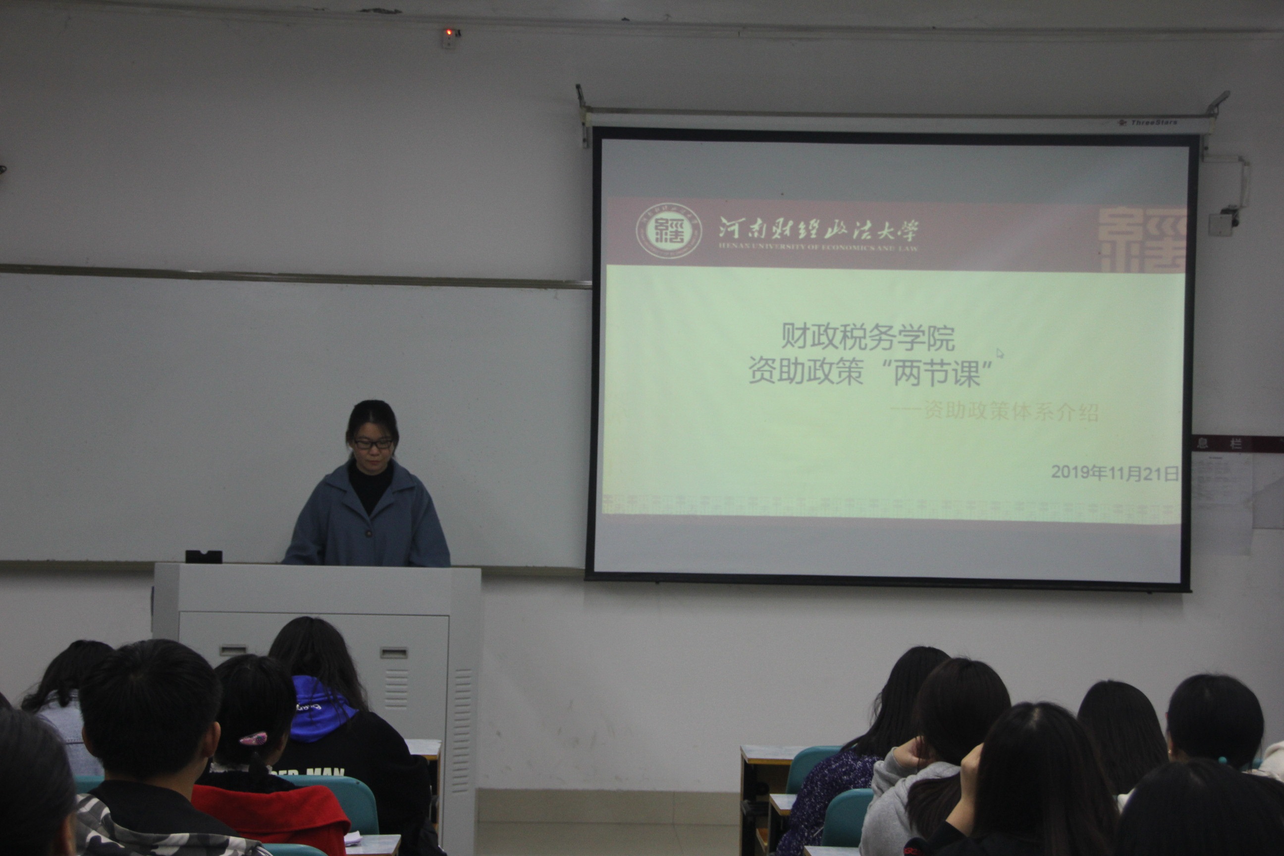 为向学生普及国家资助政策,11月21日晚19:00,williamhill英国于第二教学楼103室开展资助政策“两节课”活动。本次活动由团委副书记陈怡斐、校资助中心协理员白玉新主持讲解,18、19级学生参加。