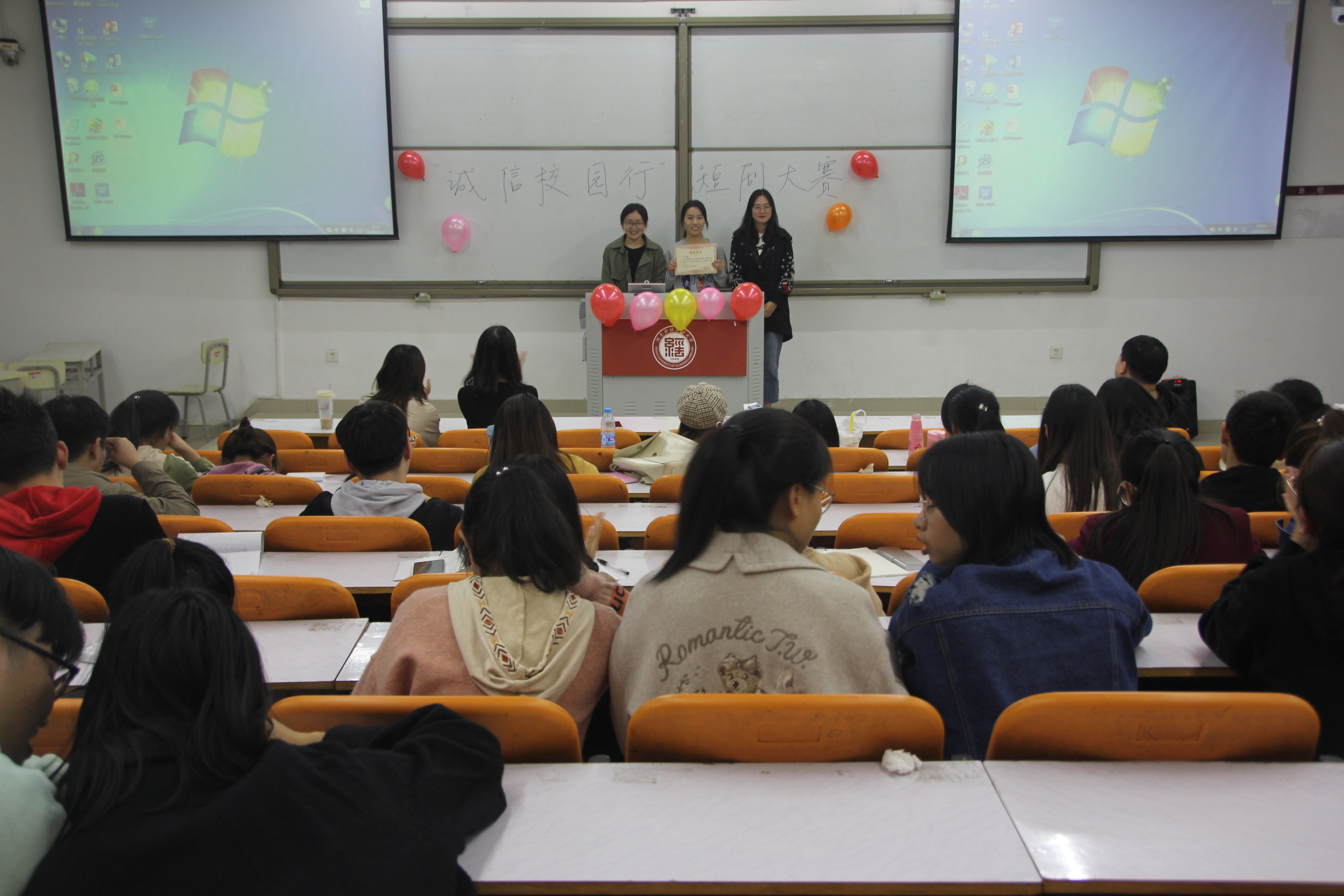 为加强学生诚信教育,构建良好校园文化,11月7日晚七点,williamhill英国于第一教学楼116教室举办“诚信校园行”短剧大赛。团委副书记陈怡斐和主要学生干部受邀担任评委。