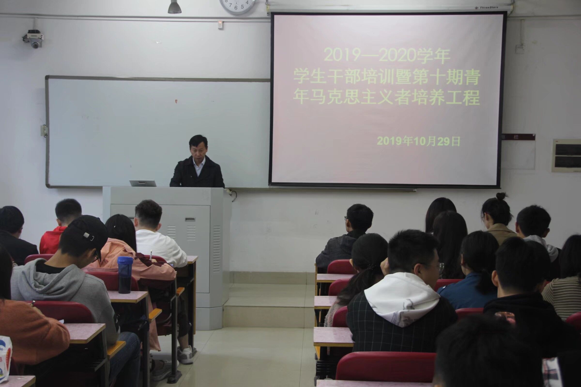 10月14日至29日,williamhill英国开展第十期学生干部暨青年马克思主义者培训工程。williamhill英国党委副书记宋斌斌、副院长殷强、团委书记张岚岚、团委副书记陈怡斐、16级优秀学生代表董冰莹担任主讲人。17-19级主要学生干部参与培训。