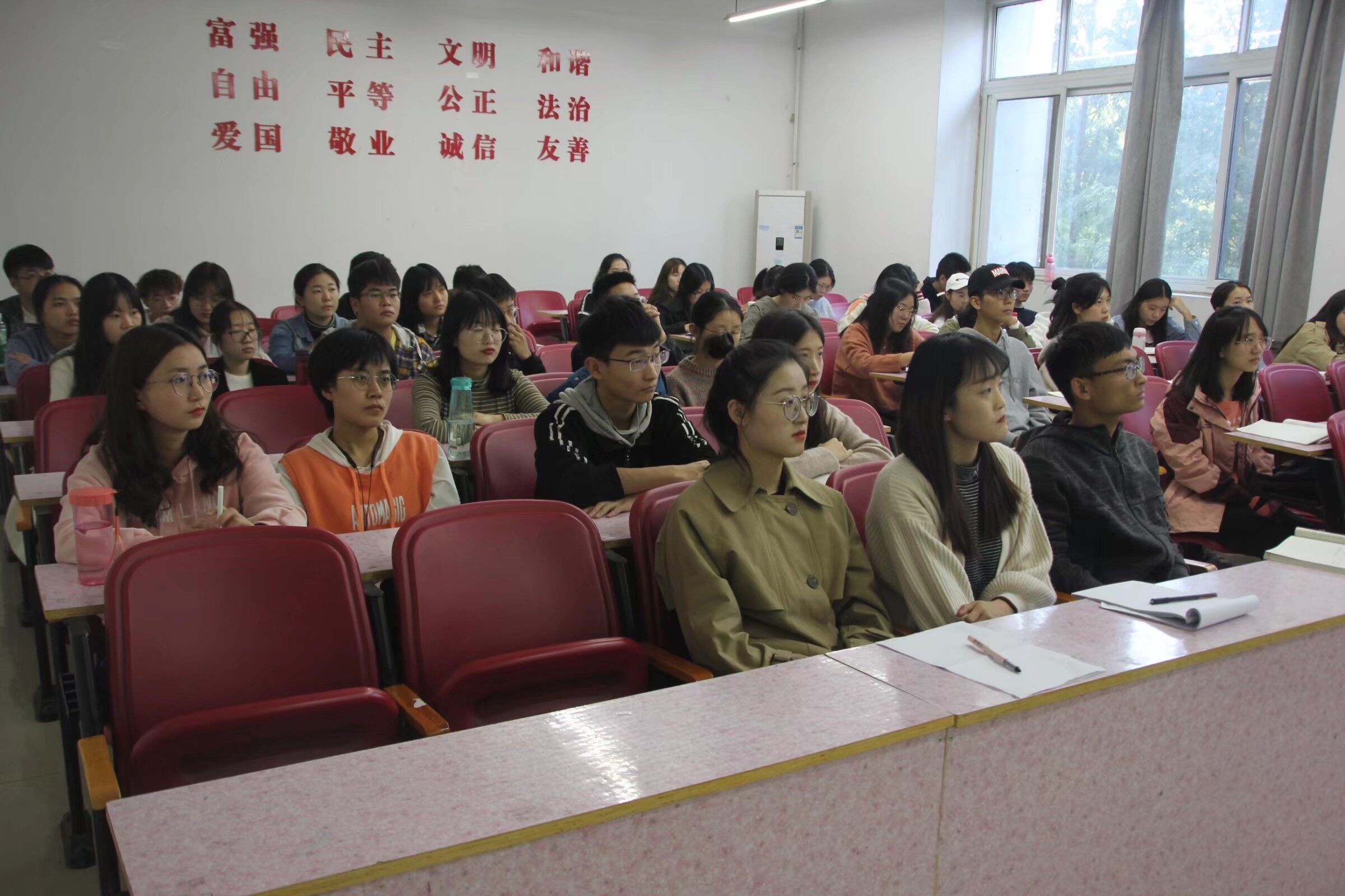 此次学生干部暨青年马克思主义者培训工程共分为五讲。第一讲由张岚岚主持,张岚岚对学院近两年的学生工作做肯定,并提出学生干部要对自我有“高要求”,对工作有“高标准”。她强调身为学生干部要有以身作则、对事不对人的工作态度和创新突破、吃苦耐劳的工作精神。第二讲的主要培养对象是各支部团干,陈怡斐采用沟通对话的方式,拉近与学生们的距离。通过解答同学们学习生活中的困难和疑惑,使同学们学习到许多有用的学习工作技巧,促进了同学们对生活的认识,提高了团干们的服务水平和服务能力。第三讲有请16级优秀学生干部董冰莹分享她的学习和工作心得。董冰莹向18级同学分享了自己在大学担任三年学生干部的心路历程,以自身为例鼓励同学们无论在生活还是工作中都要保持自信,紧握机会,勇于展现自我。第四讲董冰莹向同学们介绍党史,结合中国国情展开讲述马克思主义中国化的理论成果和实践成果,加深了同学们对党的发展的认识,督促自己努力学习成为共产主义的优秀接班人。第五讲殷强以“新时代,为中华之崛起而读书”为主题,殷强结合中美贸易战的实例,加深了同学们对中美贸易战的理解,激发了同学们的爱国热情。殷强强调到,少年强则国强,一个国家和民族的繁荣昌盛,离不开志向远大的少年们,中华民族的崛起重担,需由一代又一代的有志青年们挑起。