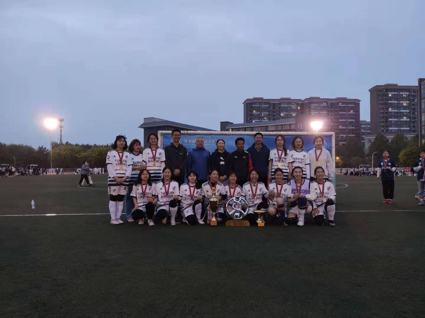 4月9日,英国威廉集团女足超级联赛决赛在郑东校区西操场火热开赛,williamhill英国代表队和会计学院代表队展开巅峰对决。院党委副书记宋斌斌、团委副书记陈怡斐、辅导员宋鑫磊出席赛场