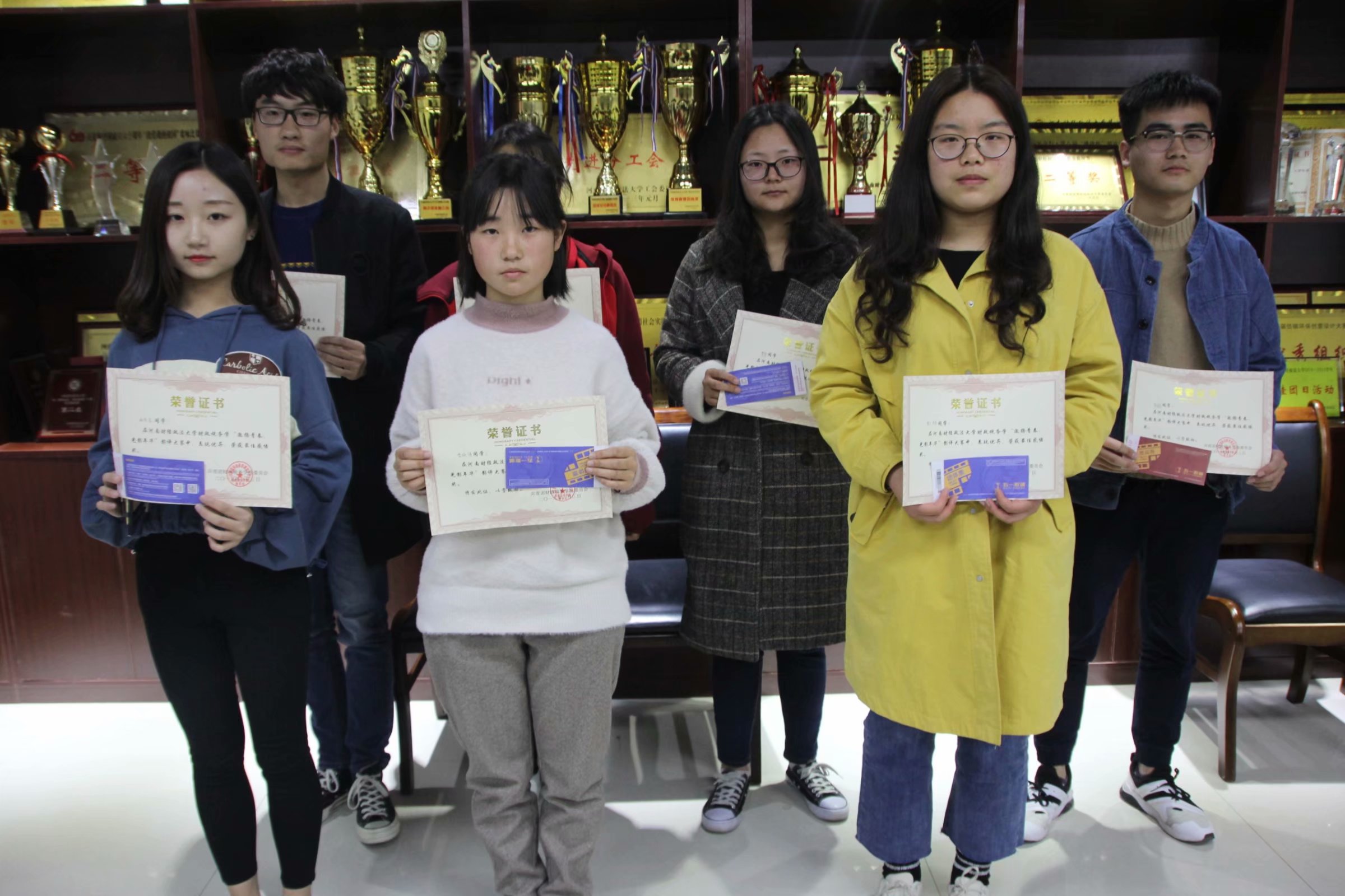 主办方对参赛同学提交的影评作品进行了点评,在对获奖同学表示祝贺后为其颁发荣誉证书及奖品。点评过程中同学们深刻讨论了相关电影的主旨及内涵,传达了本次活动召开的目的和意义。主办方寄语获奖同学继续努力,不断提高自身的鉴赏能力和写作水平,拿出更好的作品。颁奖仪式结束,工作人员组织获奖同学合影留念。