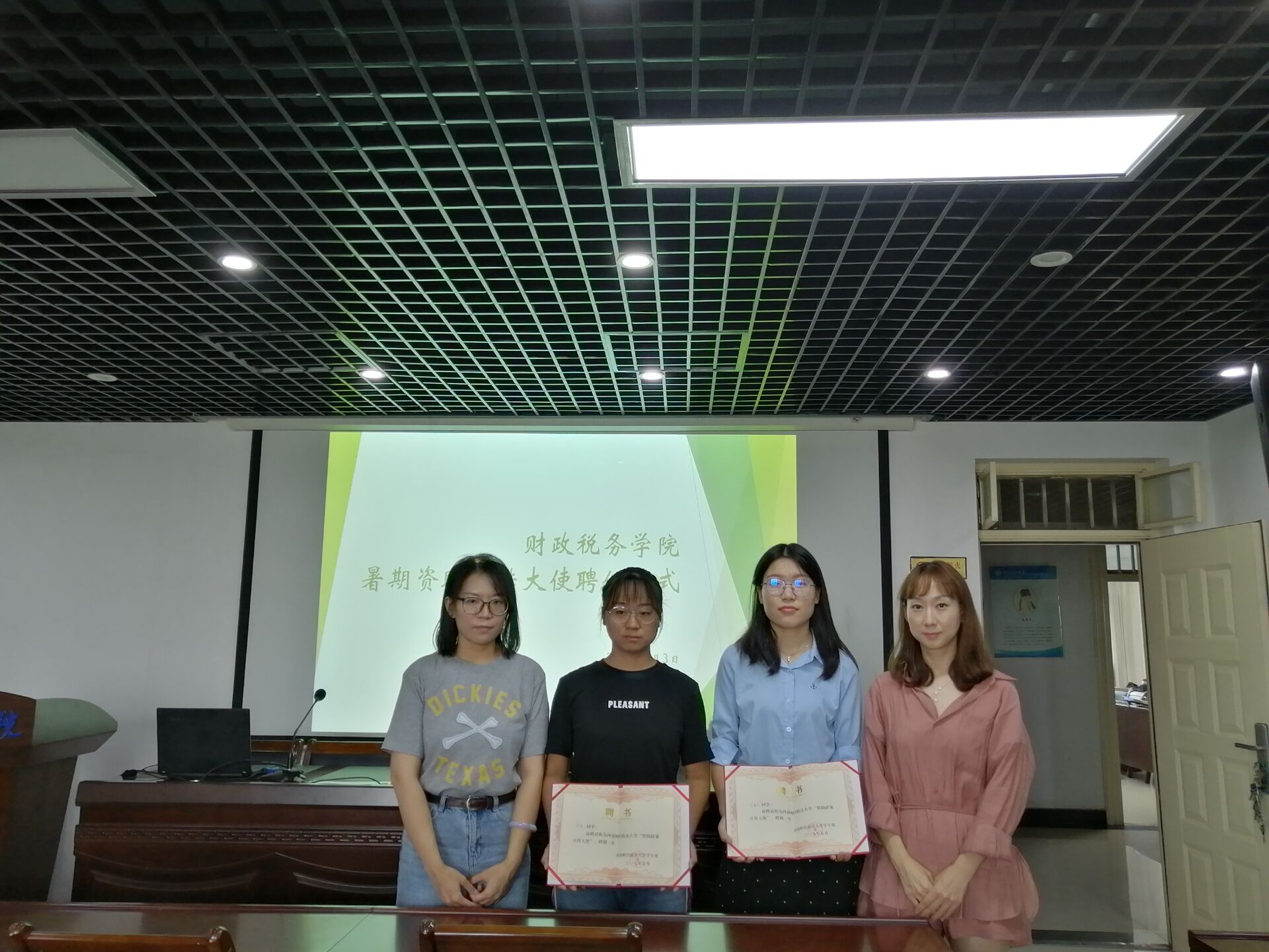 会议中,陈怡斐具体介绍了国家和学校现行的各项资助政策,并就聘任学生“资助政策宣传大使”开展学生资助政策宣传工作作了动员。之后根据学校相关政策规定,学院决定从奖学金获得者中聘请2017级李硕和2017级吕喜风担任“资助政策宣传大使”,利用暑期时间开展宣传工作。随后,张岚岚为两位大使颁发聘书及胸牌。
