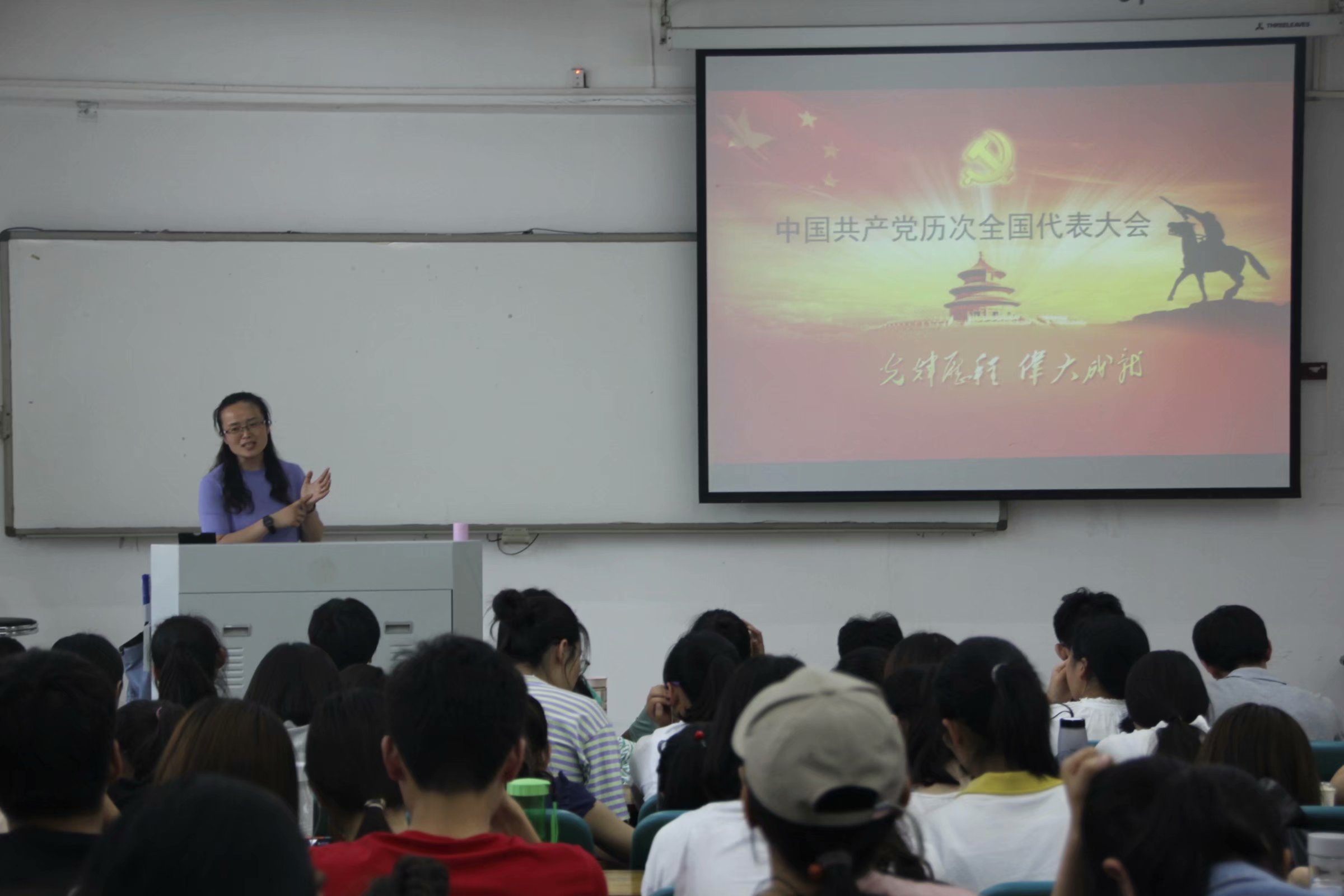 本期培训,薛桂芝重点围绕党的发展历程展开深入论述。她说到,从中国共产党的成立,到如今十九大的顺利召开,都离不开系统、科学的马克思主义理论体系的指导。作为新时代的青年,要充分认识理论学习的重要性,用习近平新时代中国特色社会主义思想来武装头脑,认真学习党的基本路线和大政方针政策,贯彻落实党的宗旨,积极响应党的号召,以实际行动向党组织靠拢。同时,薛桂芝还以提问对答的互动形式,带领在场学生学习了党的新征程与新目标,氛围热切浓厚。最后,薛桂芝强调,在参加培训结业考试时,务必端正态度,诚信作答,遵守考场纪律,真正做到以一名合格共产党员的标准严格要求自己。