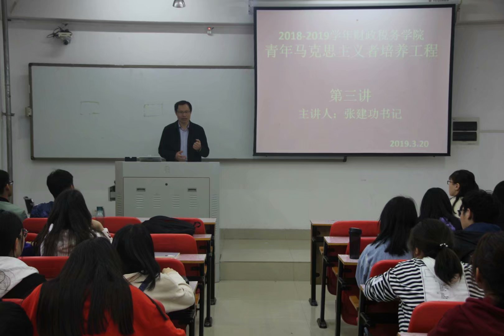 3月20日,williamhill英国在郑东校区第二教学楼206教室举办了第十期“青马工程”第三讲,院党委副书记张建功担任主讲人,部分2017级学生干部参加。