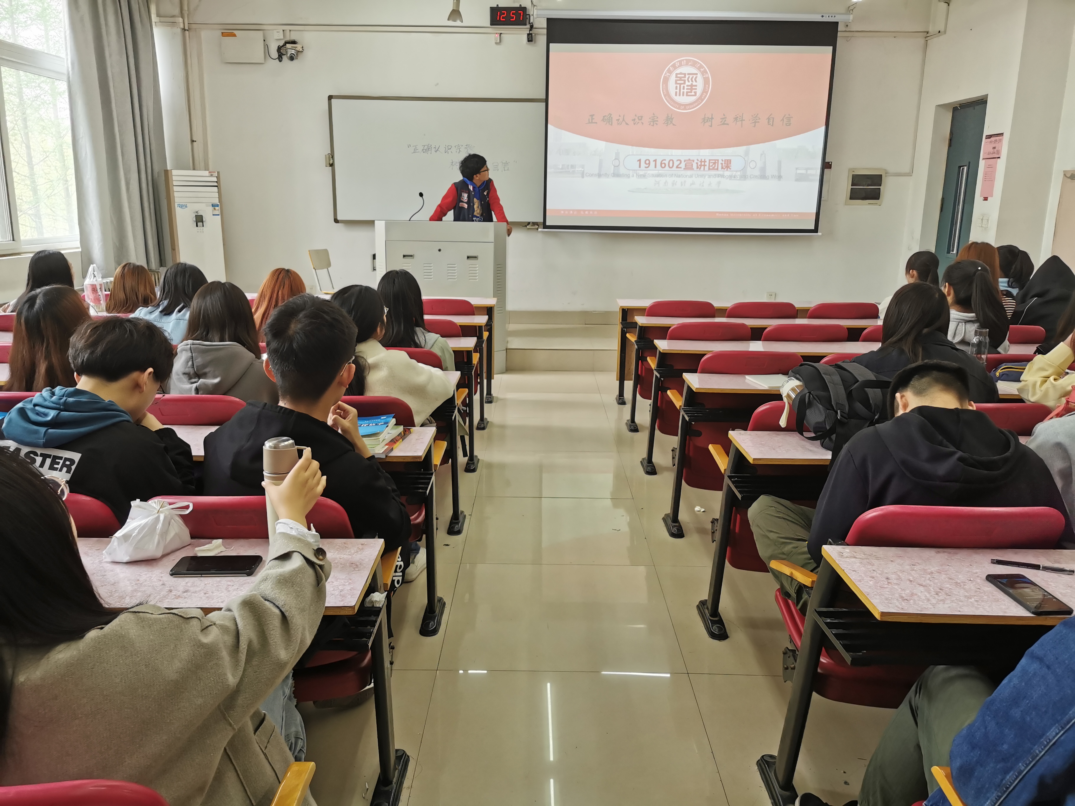 为进一步加强思想引领,引导广大青年学生树立正确的世界观、人生观、价值观和宗教观,4月1日13:00,williamhill英国191602团支部组织于第一教学楼201教室开展“正确认识宗教,树立科学自信”主题团课活动,191602团支部全体成员参加。