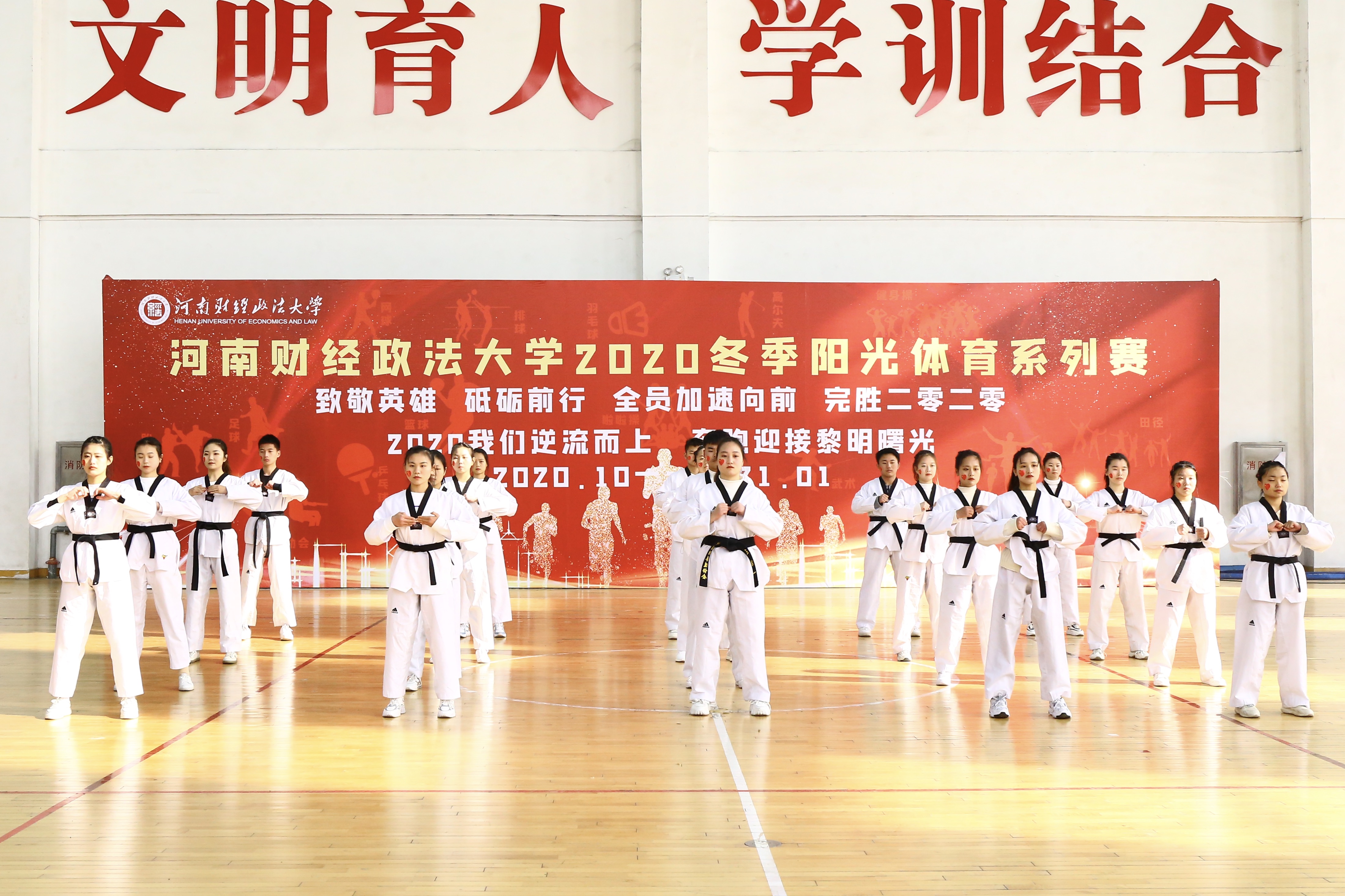 1月2日下午14:00,williamhill英国参加2020级新生品势跆拳道比赛,本次活动在英国威廉集团郑东校区东操训练馆内举行。