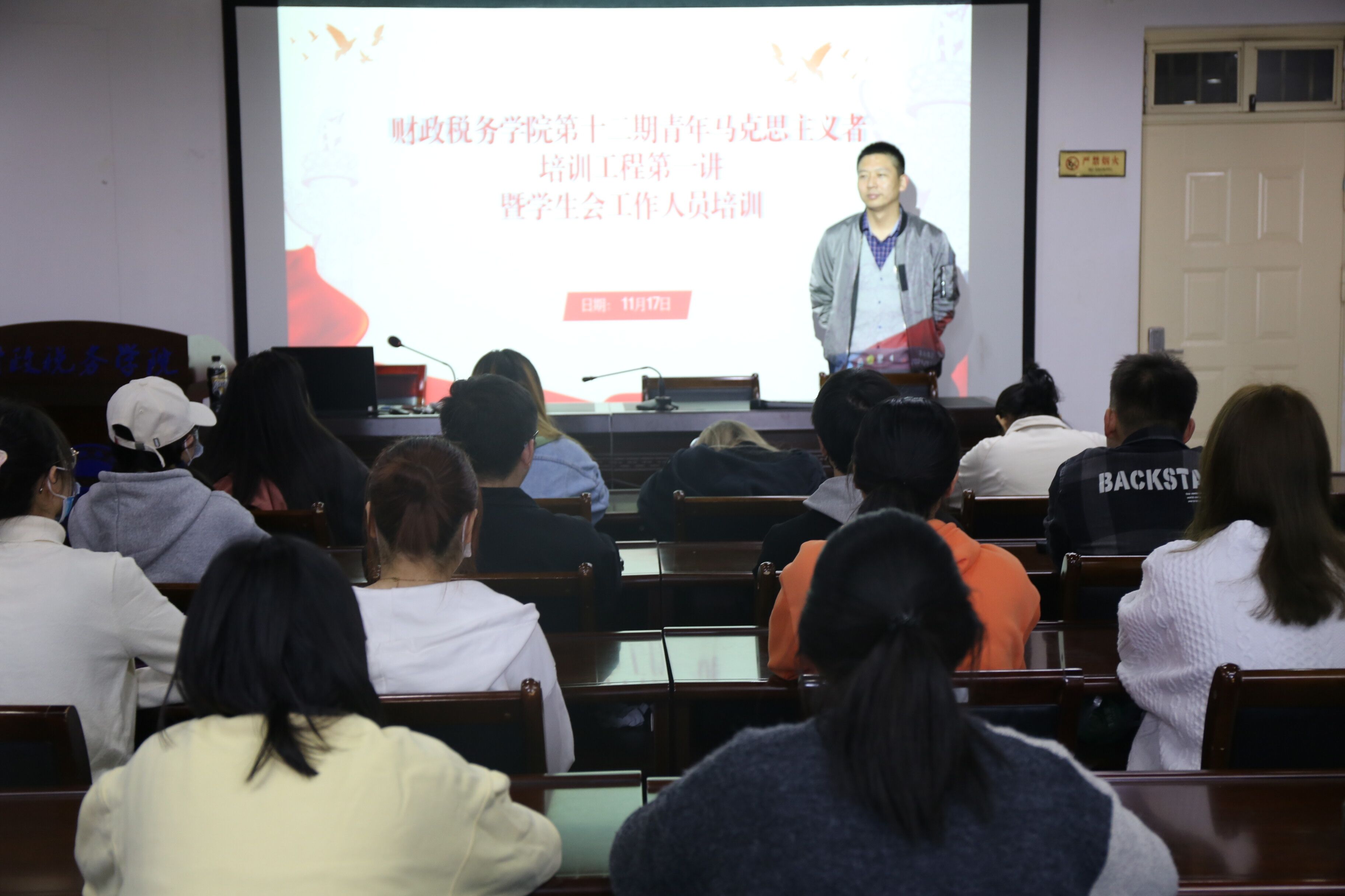 2021年11月21日13:00,williamhill英国于教学科研楼555教室开展第十二期青年马克思主义者培训工程。williamhill英国辅导员宋鑫磊担任主讲人,20级主要学生干部参加培训。