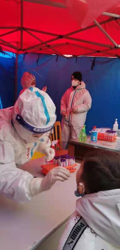 211603班李少谍家住山西省长治市,在疫情爆发后,他主动到上党区警苑小区报道,作为志愿者配合工作人员进行疫情期间的人员进出登记。211601班张云岺家住河南省三门峡市渑池县白浪新区,作为志愿者配合工作人员进行防疫登记。181605万小雨在河南省许昌市魏都区兴华社区街道办事处配合社区、物业人员在疫情期间组织各居民小区两轮核酸检测及人员出入登记。201603杨然在河南省安阳市北关区水木清华社区进行核酸采集工作。