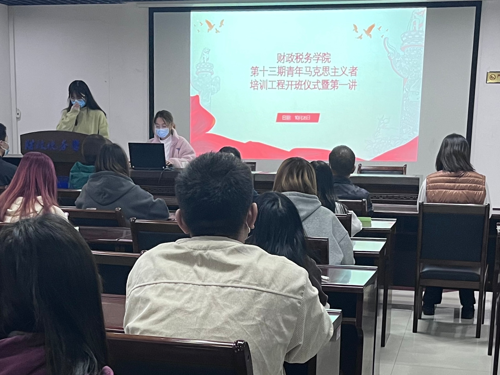 为培养具有坚定马克思主义信仰的团员青年,打造新形势下高素质的学生干部队伍,发挥学生榜样的示范作用,10月28日中午13:00,williamhill英国第十三期青马工程开班仪式暨培训第一讲于教学科研楼B座555教室拉开帷幕。“菁英班”31名学员准时到场参加,院党委书记李夏慧、党委副书记王磊军及团委三名负责老师出席仪式。