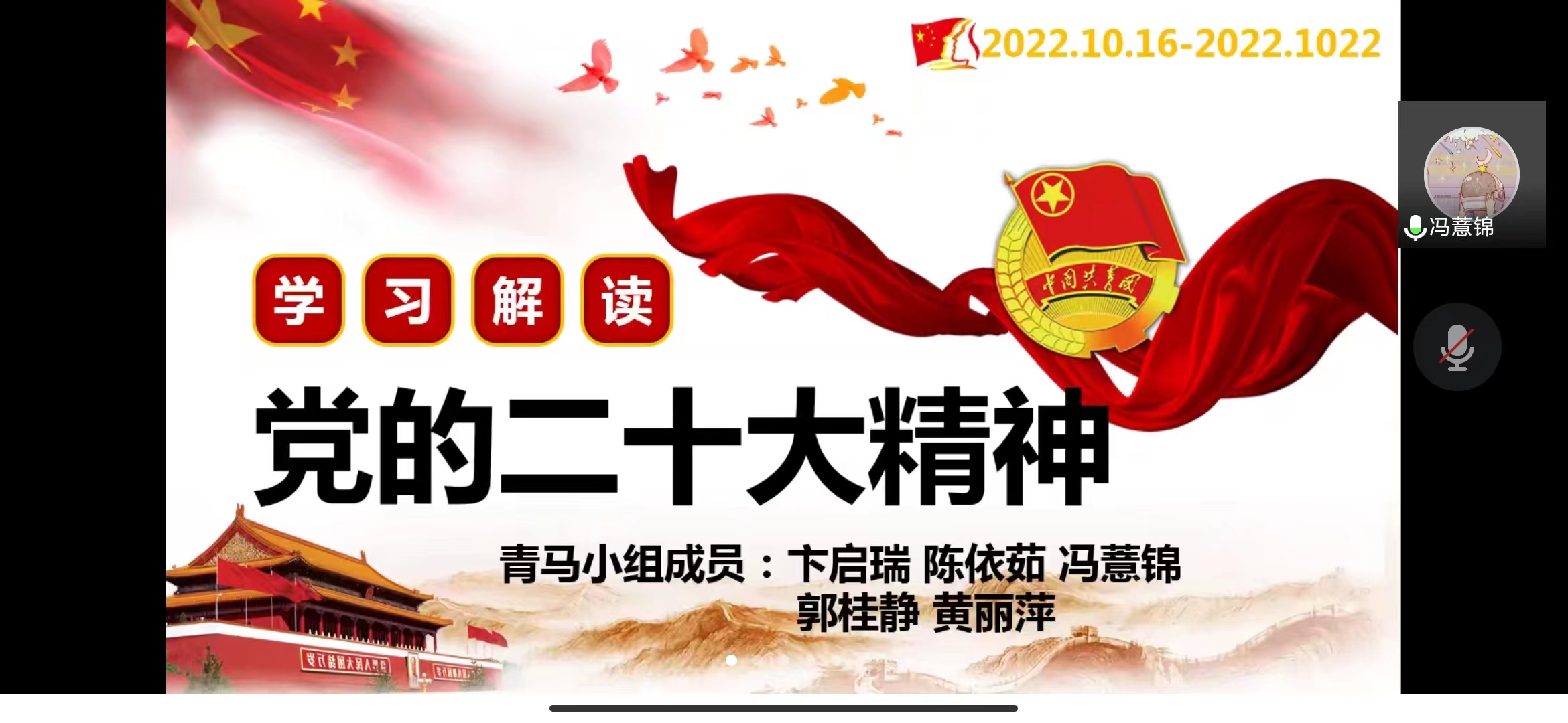 培训伊始,青马工程菁英班的第一、二组学员上台进行PPT展示,结合所学、所思、所悟,分享了自己对于党的二十大精神的理解和认识。随后,全体学员共同观看学习视频,进一步深入学习党的二十大精神。会议强调,我们要高举中国特色社会主义伟大旗帜,全面贯彻新时代中国特色社会主义思想,弘扬伟大建党精神;我们要以钉钉子精神纠治“四风”,反对特权思想和特权现象;我们要坚定信念,焕发出更为强烈的历史自觉和主动精神;我们要坚持发扬斗争精神,依靠顽强斗争打开事业发展新天地;我们要加快建设法治社会,弘扬社会主义法治精神,传承中华优秀法律文化;我们更要弘扬以伟大建党精神为源头的中国共产党人精神谱系,深入开展社会主义核心价值观宣传教育。