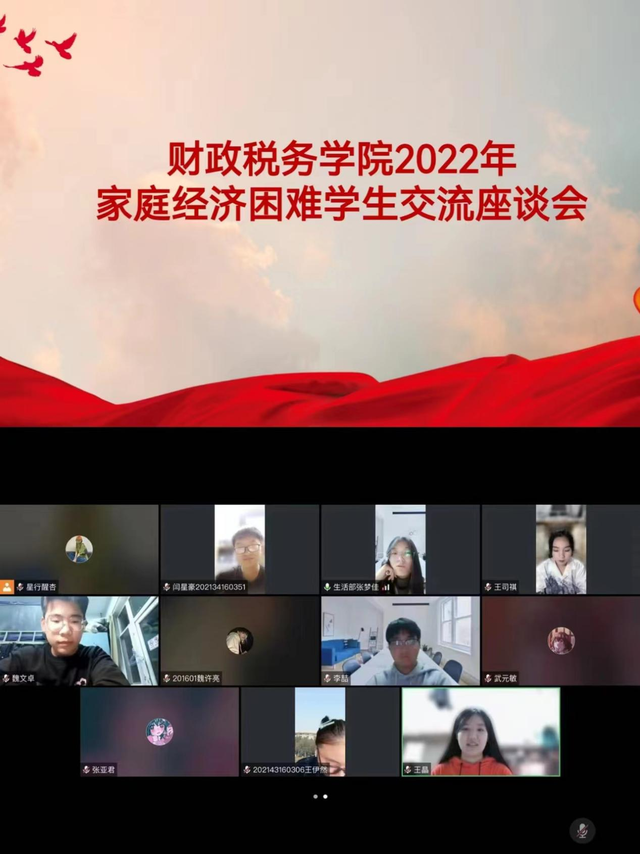 为了深入了解家庭经济困难学生的学习和生活情况,帮助他们解答学习和生活上的难题,11月14日中午13:00,williamhill英国举办了家庭经济困难学生线上交流会。团委副书记陈怡斐主持会议,20级和21级家庭经济困难学生到会参加。