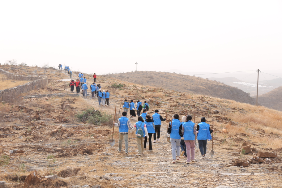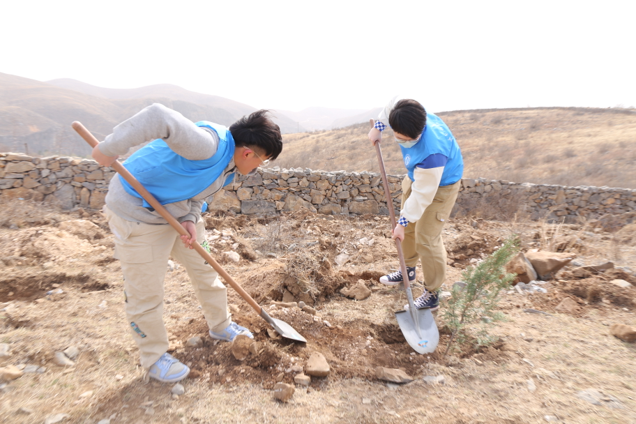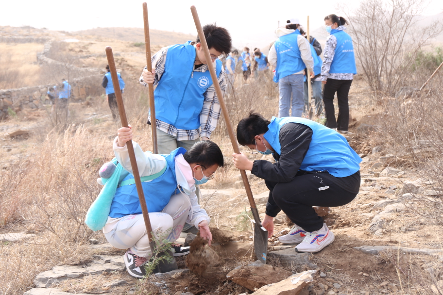 带着保护环境的初心,秉持着对优质自然生态的美好希冀和赤诚热爱,51名青年志愿者踏上了“护绿”之旅。植树现场,志愿者们热情高涨,有序分工,大家或挥锹铲土,或扶苗覆土,或清理垃圾,或提水灌溉,欢声笑语间已见树影林立,自成一片生机景象。