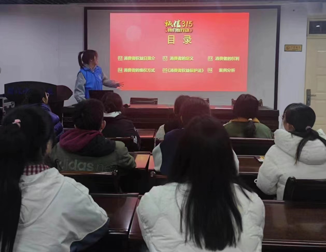 活动现场,主讲人带领大家观看维权短视频,通过典型案例细致讲解日常消费中如何防范被侵权、侵权发生时如何维权以及举报违法商家的途径,同时结合当下消费维权热点话题,以个人信息泄露的危害为切入点,提醒同学们提高隐私保护意识。面对消费陷阱和消费套路,她强调同学们要勇敢拿起法律武器,通过正确的维权方式途径,维护自身的合法权益。
