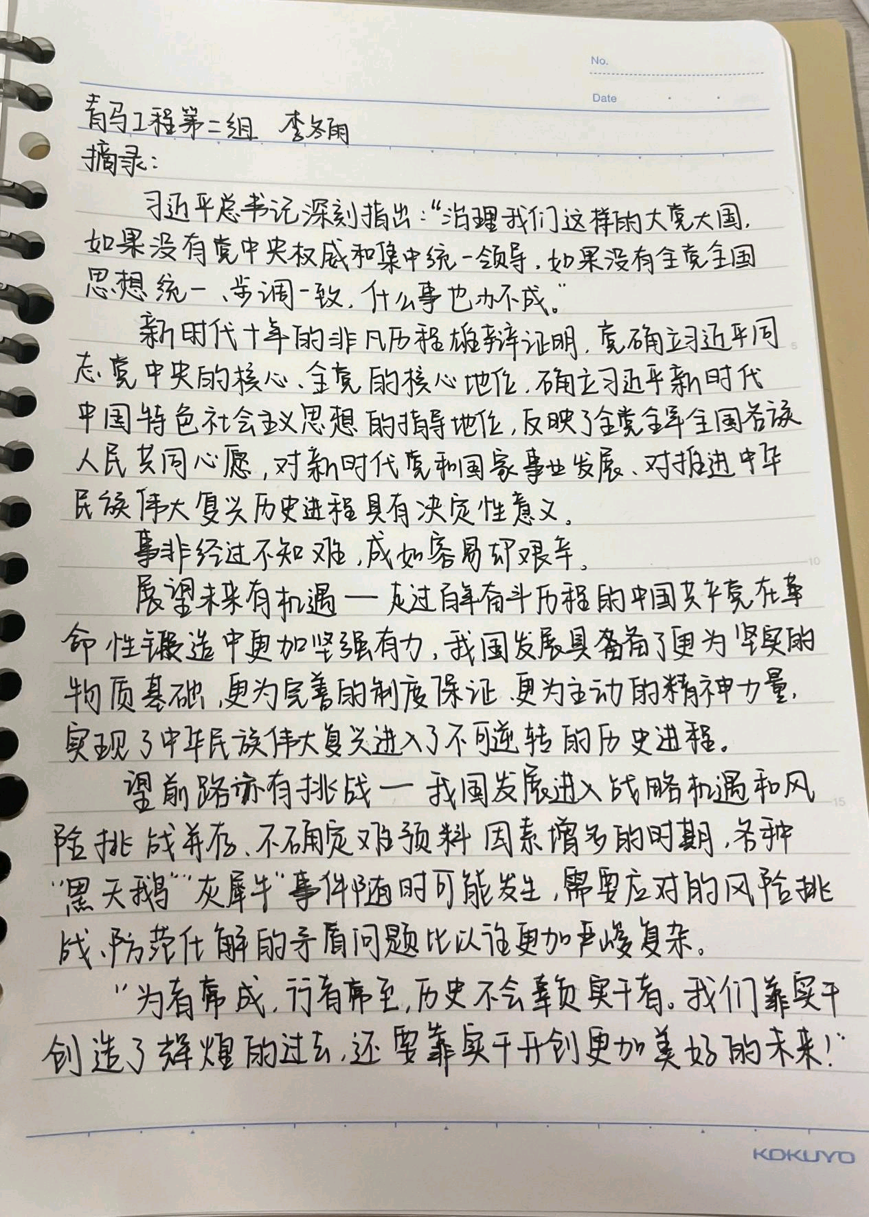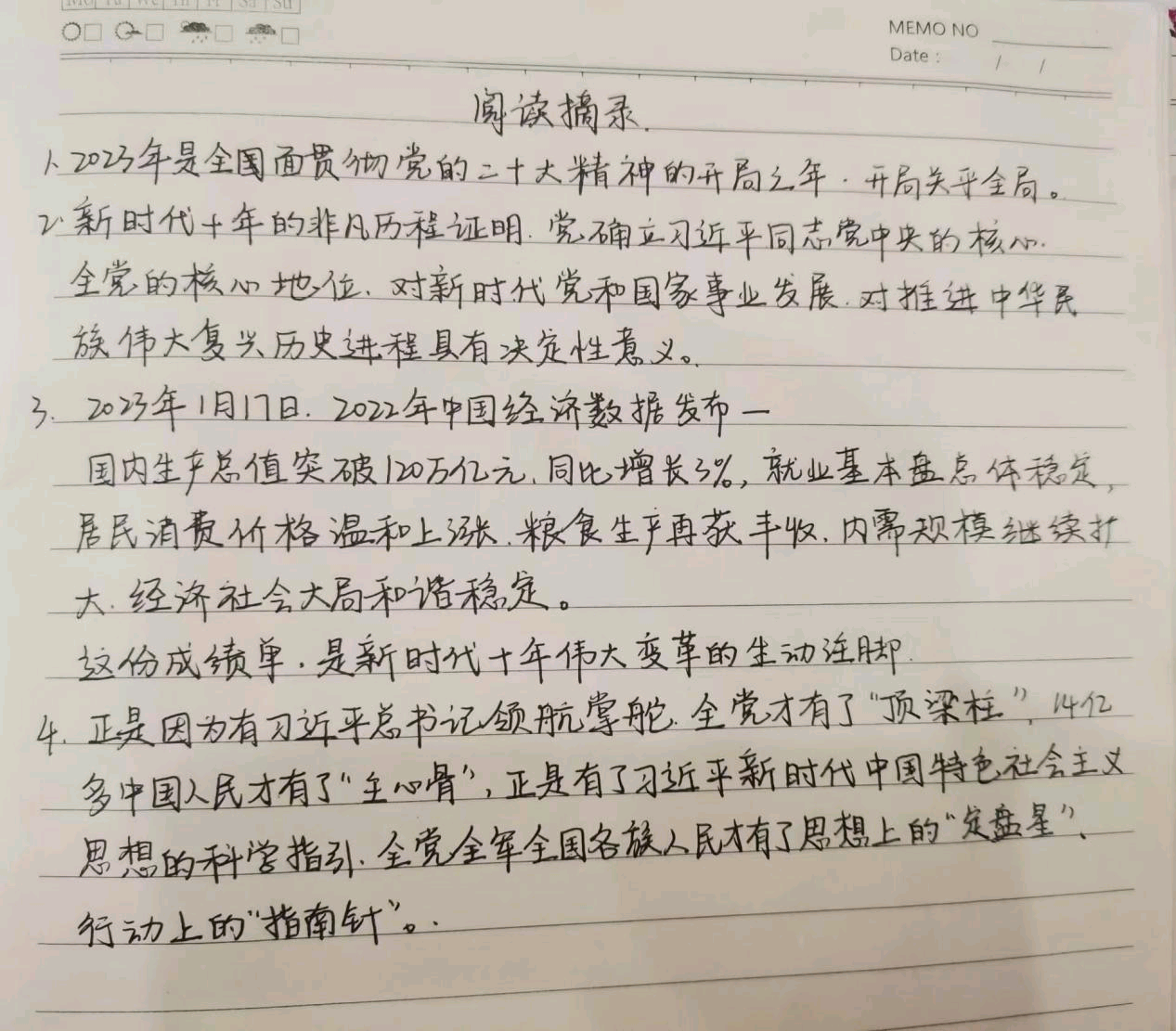 主讲人首先领学了人民日报上新华社记者的文章——《“两个确立”为党和国家事业发展提供根本保证》,分享学习笔记,与学员交流学习感悟。过程中大家畅谈心得,深刻领悟了“两个确立”的决定性意义,纷纷表明立场,要坚定不移听党话、矢志不渝跟党走,思想上、政治上、行动上始终同以习近平同志为核心的党中央保持高度一致,做“两个确立”的坚定拥护者,在工作中努力成长,在学习上奋勇向前,为全面建设社会主义现代化国家奉献力量。