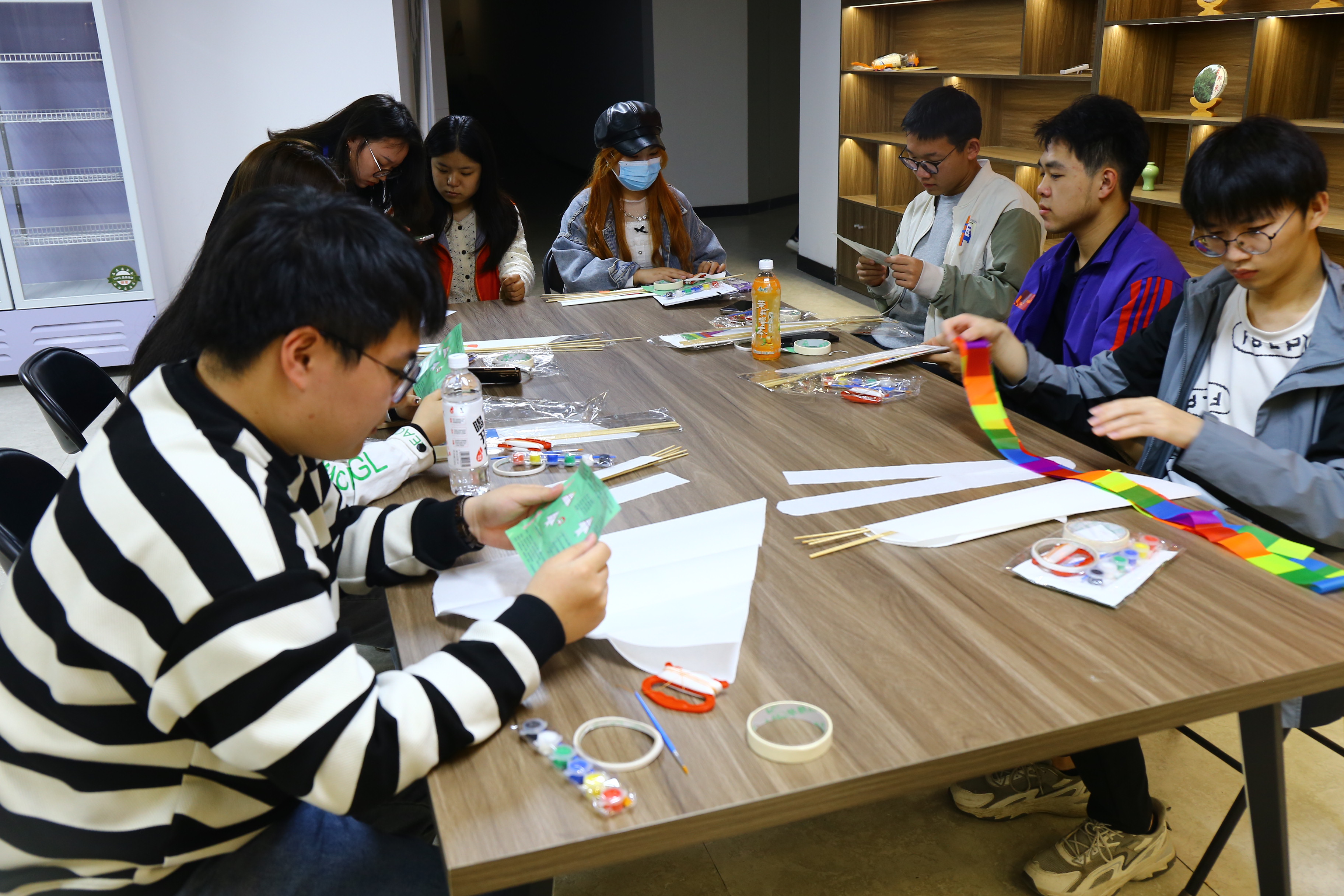 风筝作为我国民俗文化之一,拥有两千多年的悠久历史,隋唐以后,清明时节“放断鹞”更是成为人们热爱的一项游艺活动。在活动现场,同学们一起了解风筝的起源,熟悉风筝制作的基本步骤,交流对风筝制作的创意构想,撑轮廓、粘布坯、绘画、系绳线……在一片欢声笑语中,一个个色彩斑斓、灵动可爱的风筝就制作完成了。实践环节过后,活动负责人向同学们普及了有关清明节的习俗和文化,同学们积极互动,交流分享自己对传统文化的理解和认识,这堂“身临其境的民俗文化课”给同学们留下了深刻的印象。