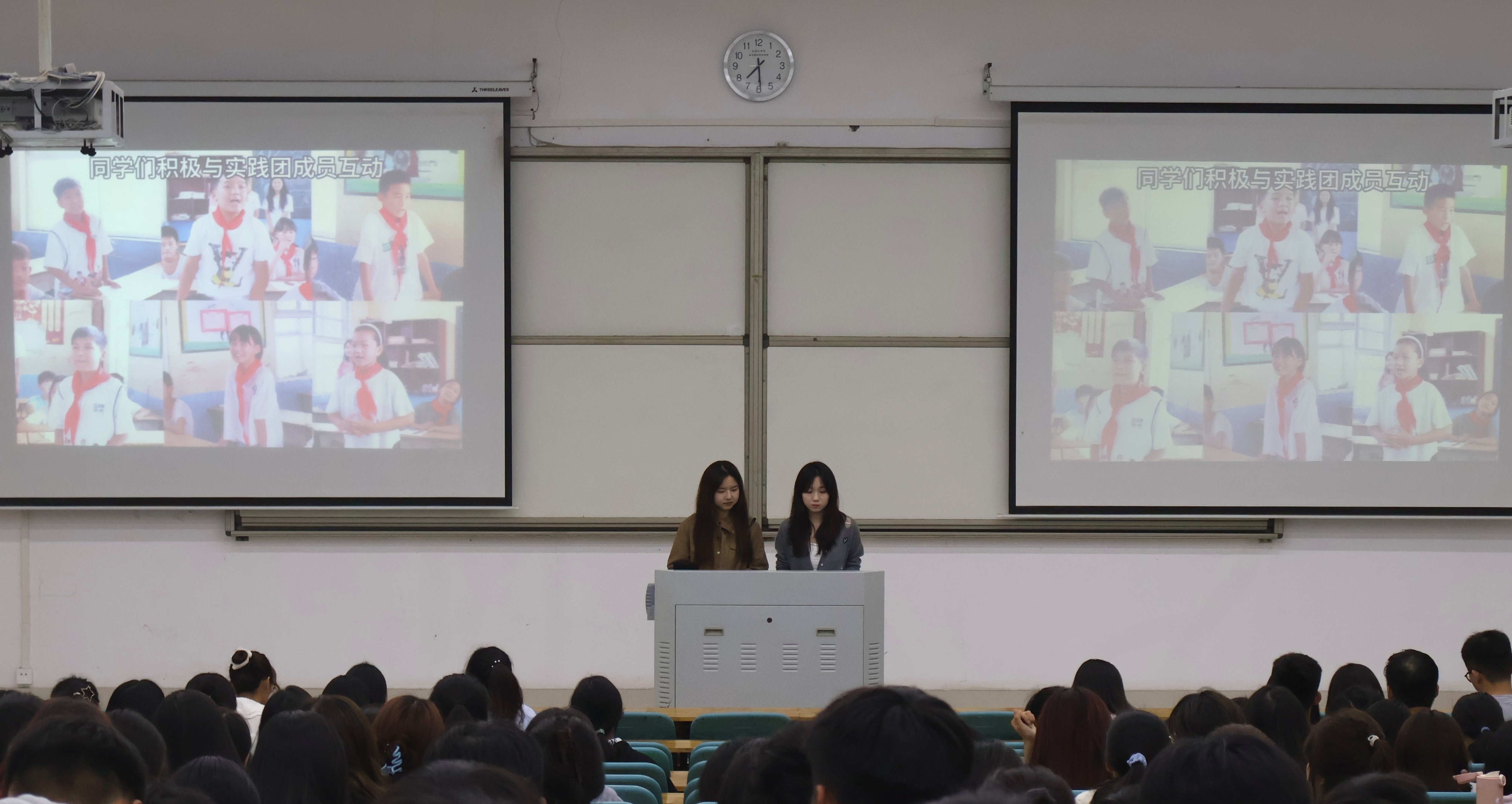 本次报告会分成果展示和归来话感受两个环节进行。成果展示阶段,参与展示的重点实践团队围绕实践内容、实践过程、实践成果、媒体宣传和杰出经验等方面,通过精心制作的视频,逐一分享了属于自己的实践故事,生动记录了“三下乡”期间的点点滴滴。