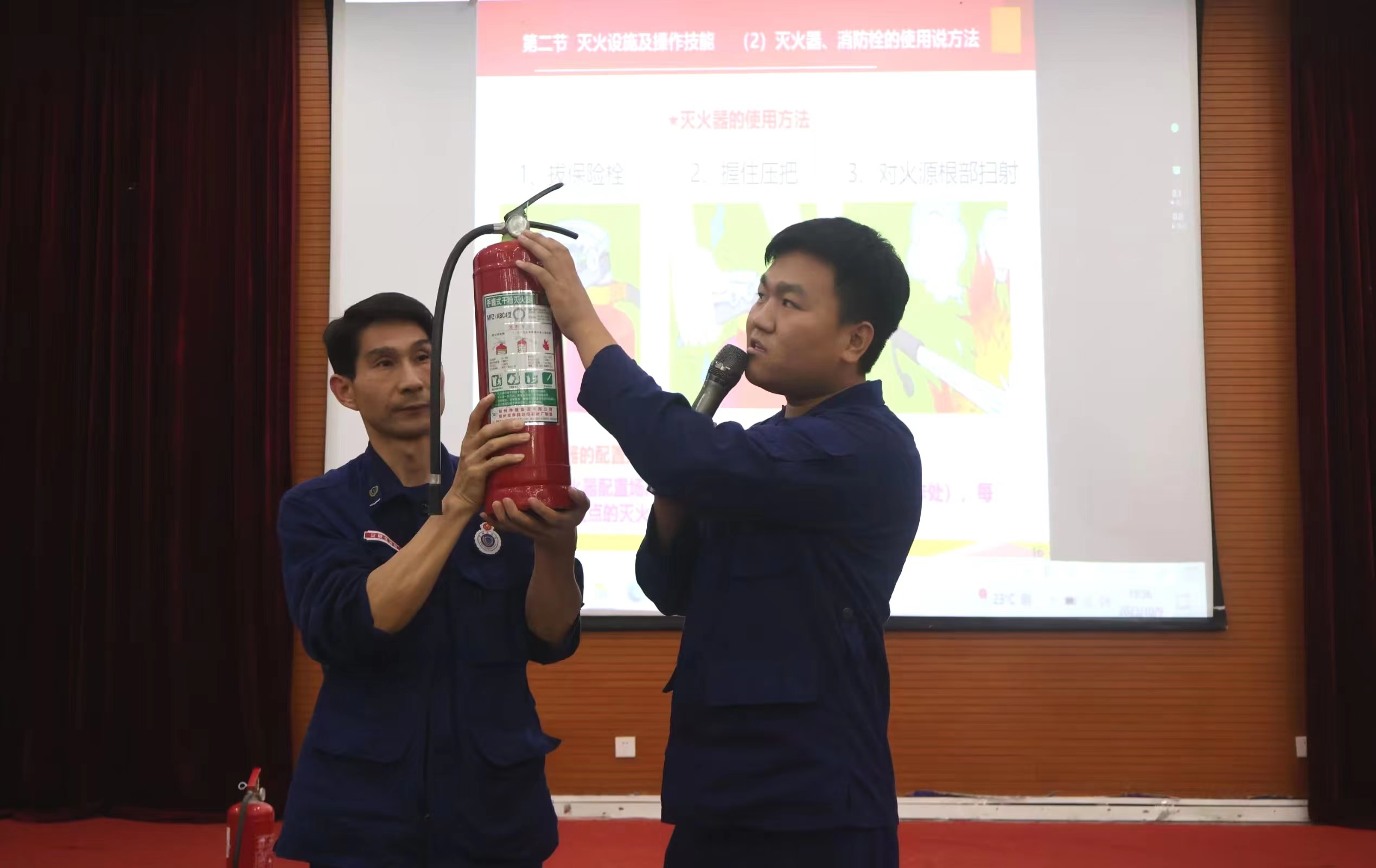 讲座中,吴庆围绕消防相关法律法规、初期火情扑救措施及方法、消防器材的使用、应急自救常识等方面进行讲授,并结合真实案例,通过视频和图片对消防安全的重要性进行细致深入地解析,旨在提升同学们的消防安全意识。实训过程中,河南省消防救援宣传教育机构专职教员亲身示范,向同学们演示灭火器材的使用方法,通过与同学们进行互动交流,加深同学们对消防常识的了解认识,熟悉消防器材的使用方法。最后,吴庆通过一段视频向同学们科普生活中易引发火灾的危险行为,如边充电边玩手机、电瓶车推入家中充电等,警示同学们要防范在先,警惕在前,合于规,慎于行,时刻将生命安全放在首位。