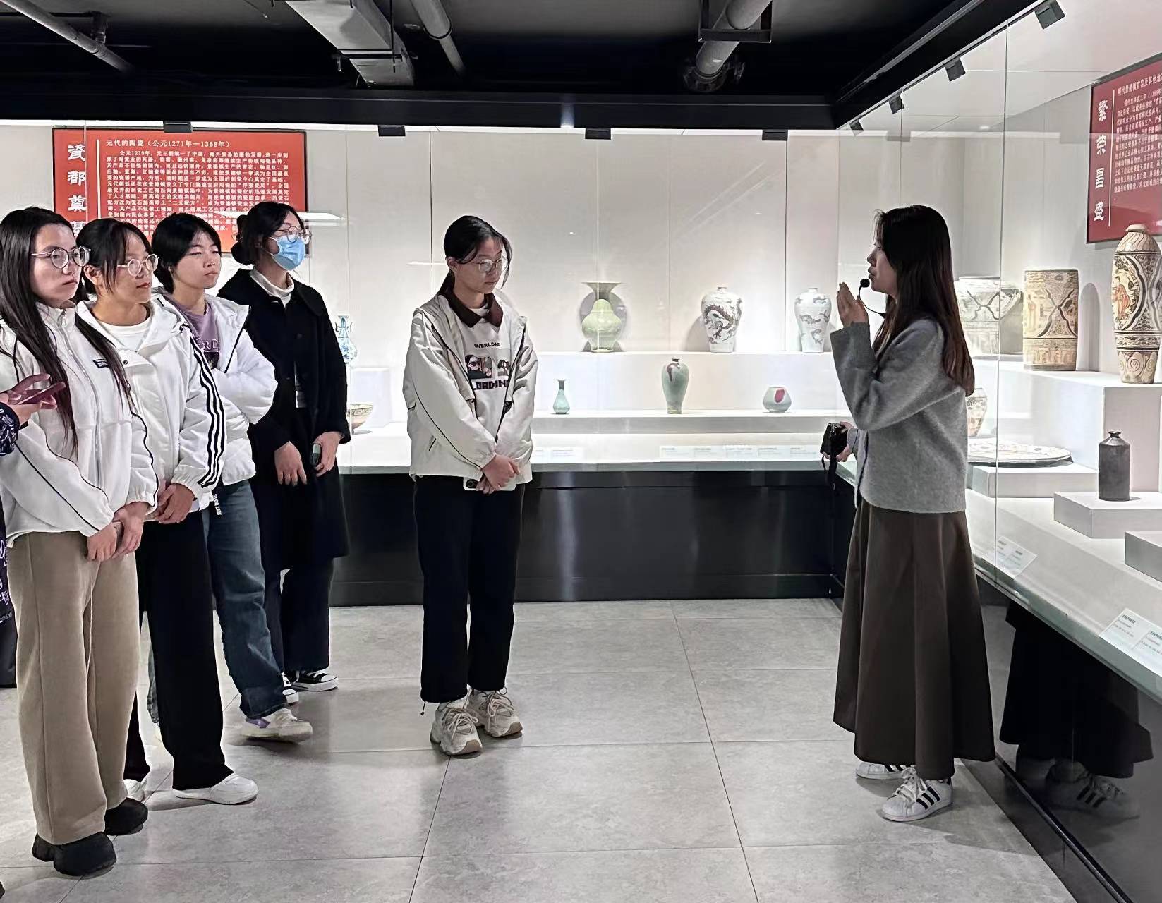 追随历史的年轮,同学们先后参观了博物馆陶瓷器展厅、法器法典展厅、古钱币展厅和非物质文化遗产展厅。讲解员从文物形态与历史背景等方面展开解说,同学们惊叹于陶瓷的精美绝伦,震撼于法典法器的庄严厚重,沉浸于钱币的源远流长,深刻体会到了中华文化的博大精深,中国文明的源远流长。