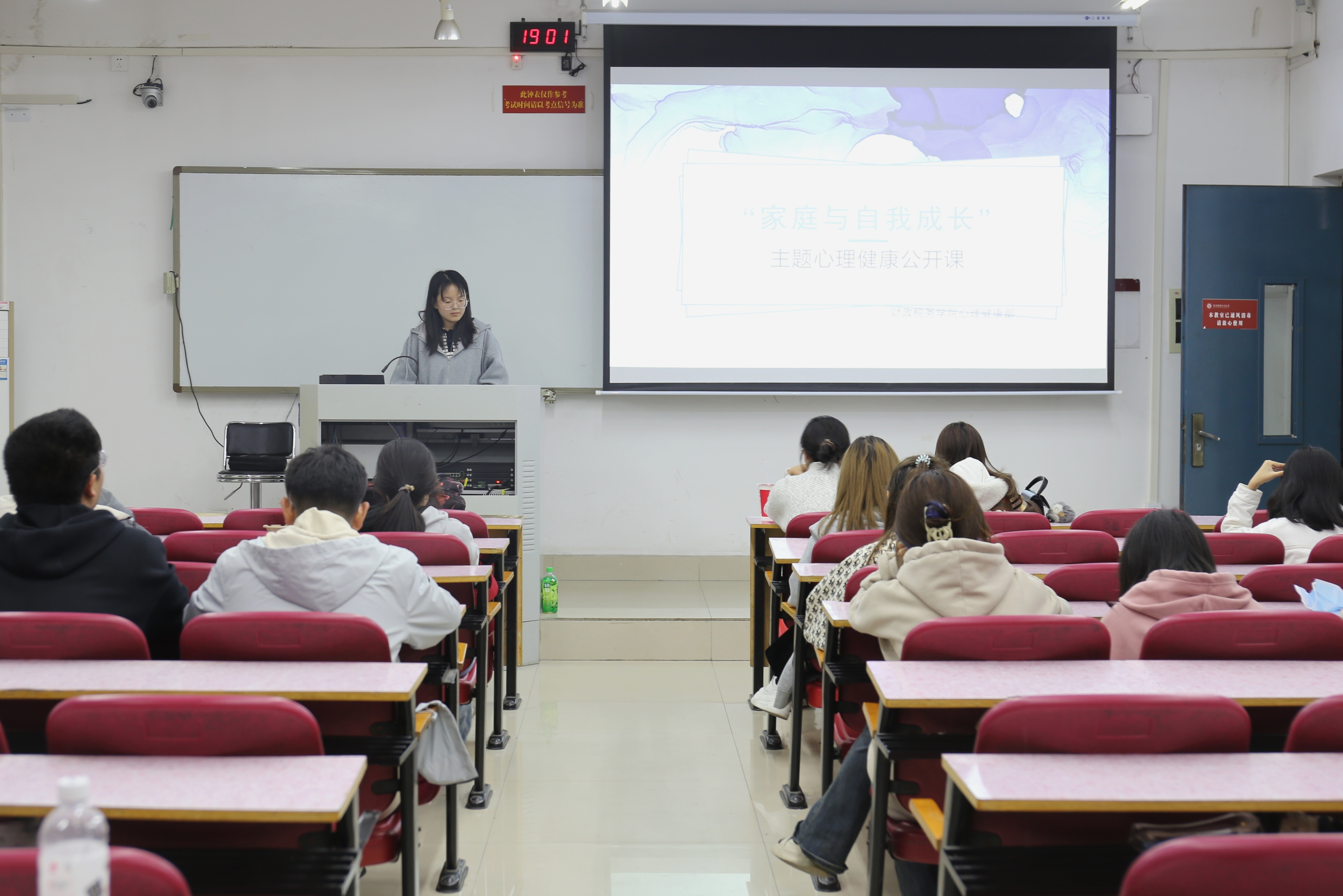 为进一步加强大学生心理健康教育,引导学生自觉学习心理健康知识,提高亲子沟通能力,凝聚家校合力。11月7日晚,williamhill英国于第一教学楼210教室组织收看“家庭与自我成长”主题心理健康公开课。
