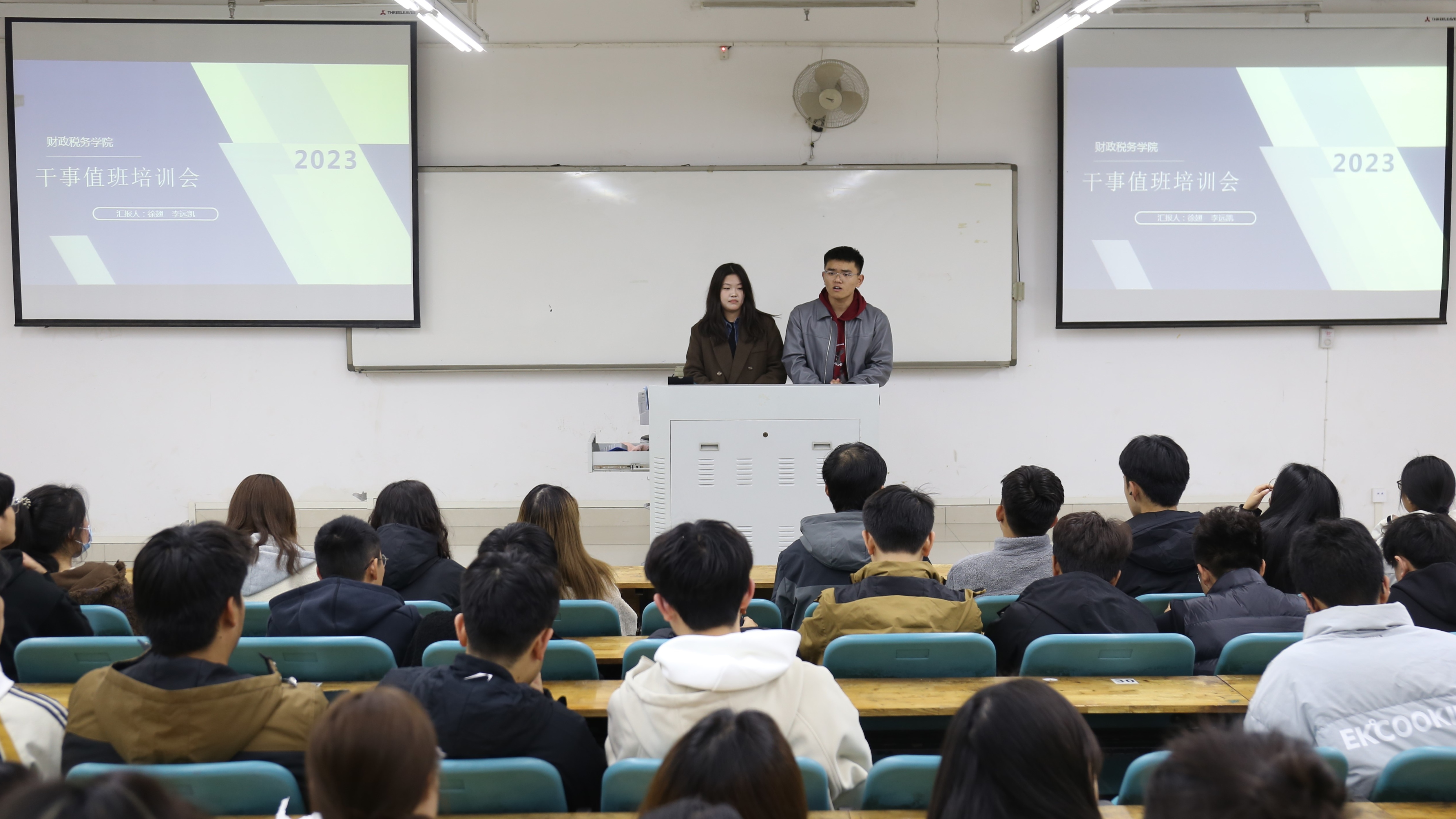 为规范值班制度,使值班人员更好地履行职责,确保本学期值班工作的顺利进行,williamhill英国于11月15日晚19:00在教学科研楼109教室召开2023级干事值班工作培训会。本次培训会由院学生会办公室负责学生主讲,2023级院各学生部门全体干事参加。