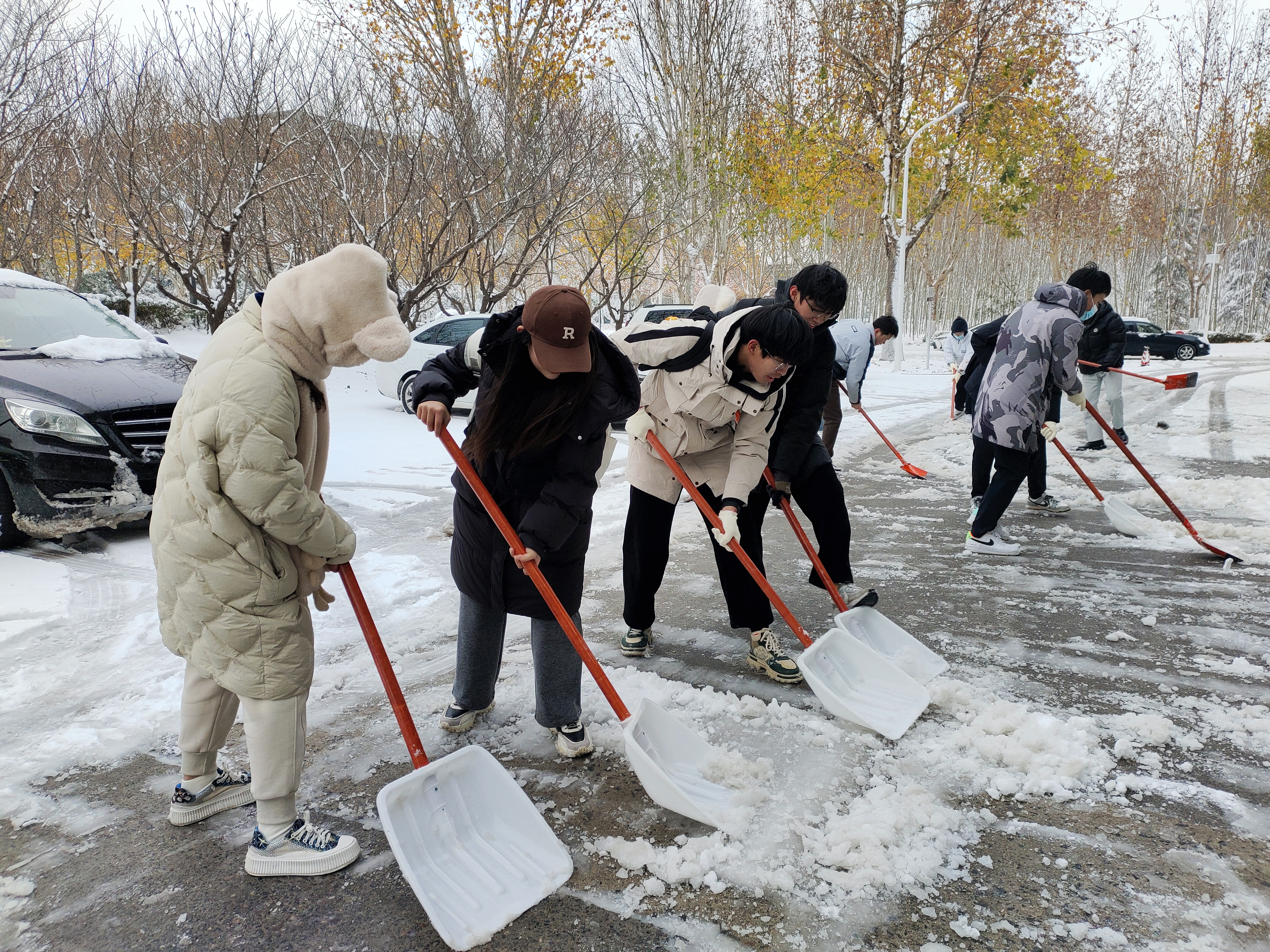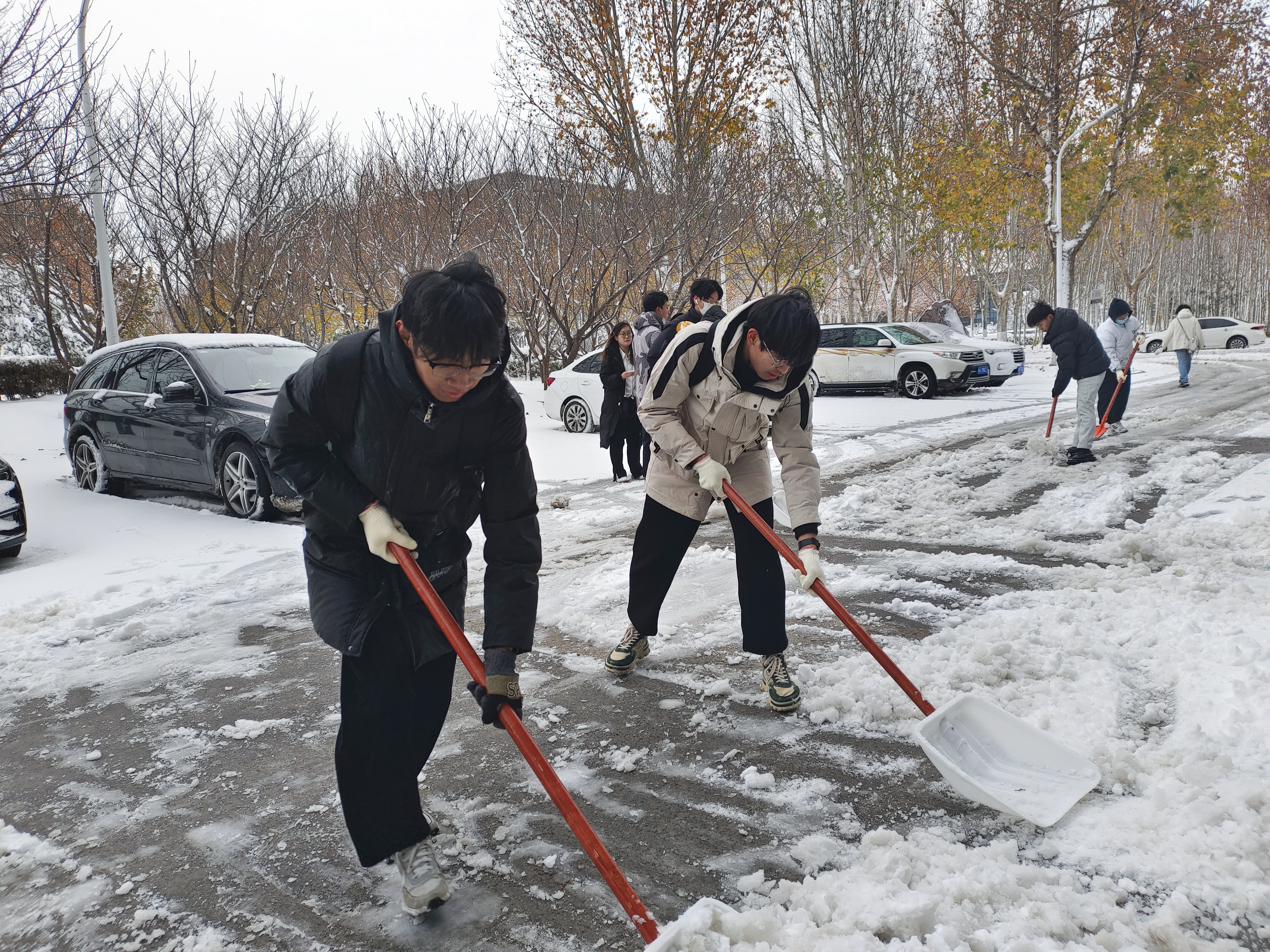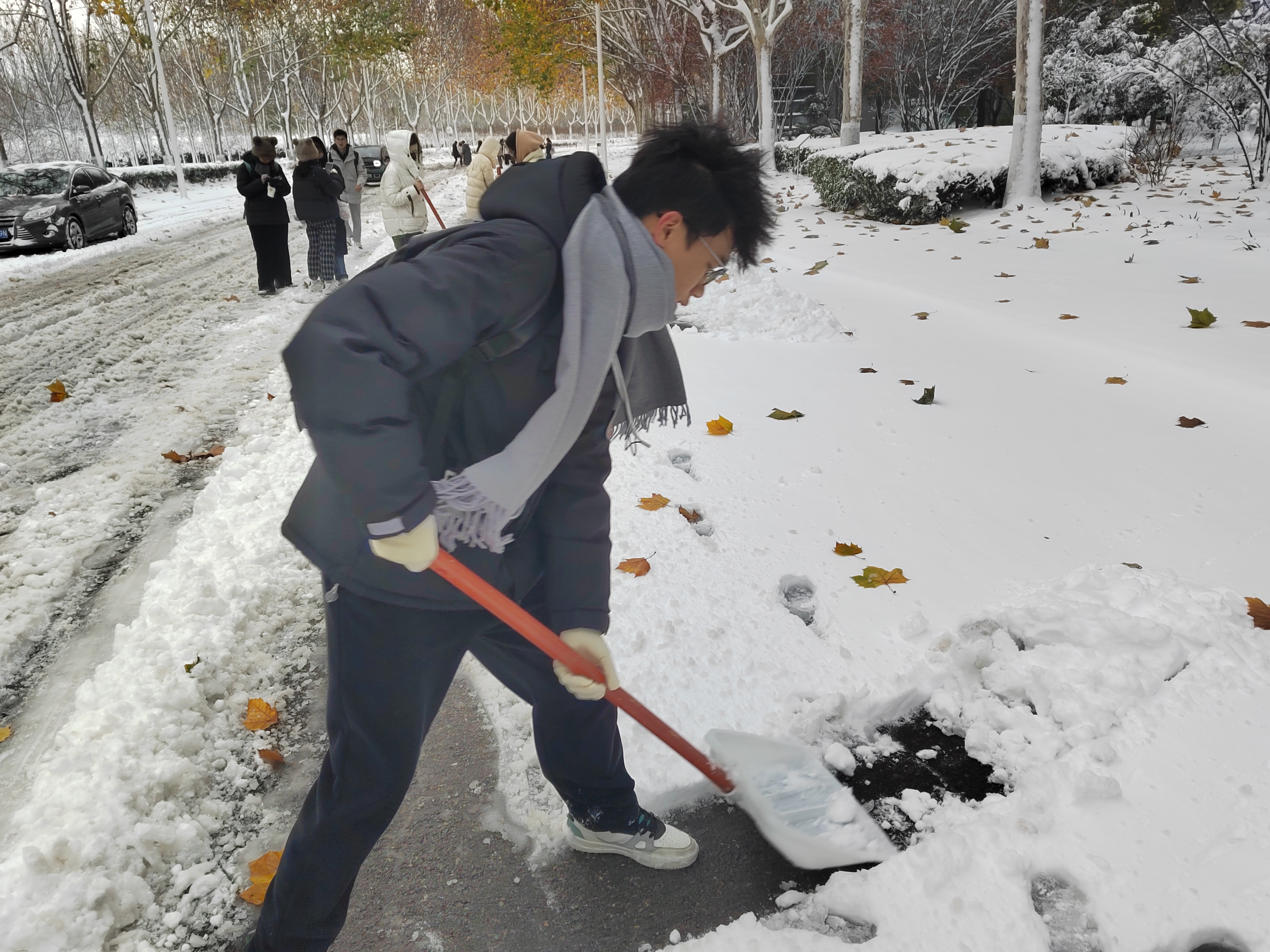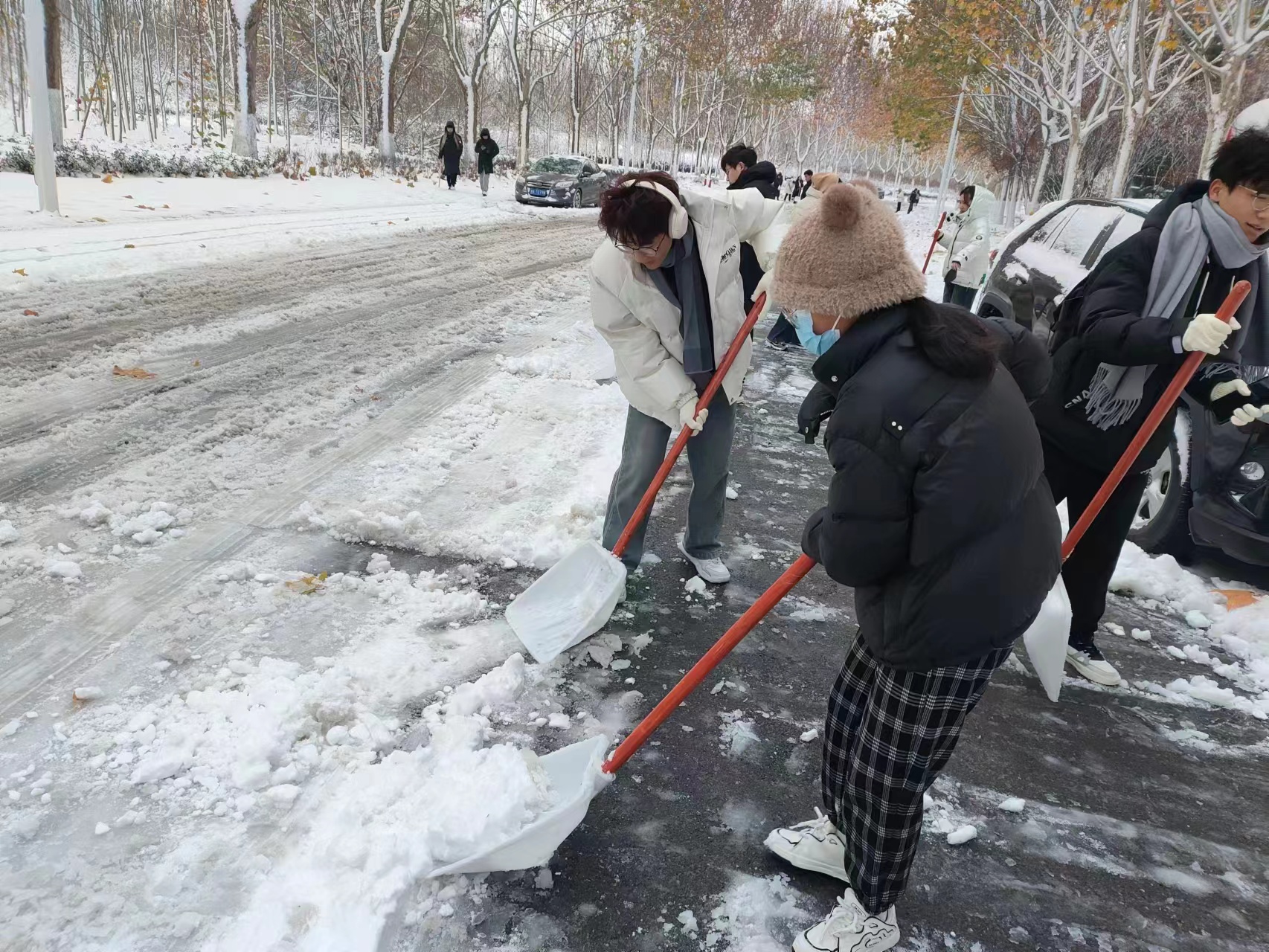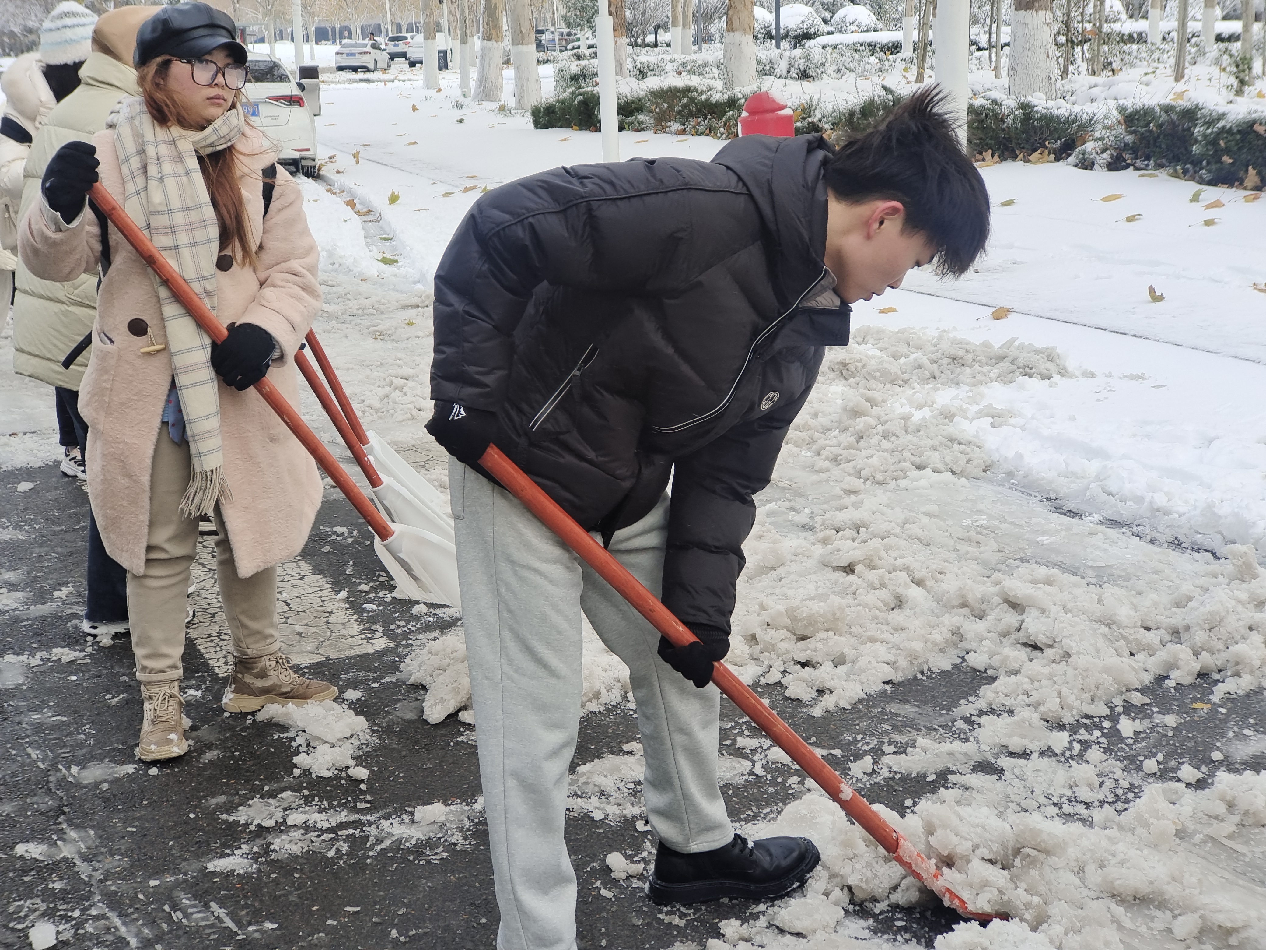 12月10日,受强冷空气影响,郑州市降温、大风、暴雪齐上阵,一夜之间校园银装素裹。为防止本轮降雪天气对广大师生出行造成影响,12月10日晚间,williamhill英国向广大学生党员、入党积极分子以及学生骨干发出清除积雪的号召,同学们踊跃报名,在学院辅导员孟戈、冯园林的带领下,以实际行动践行初心、担当使命。