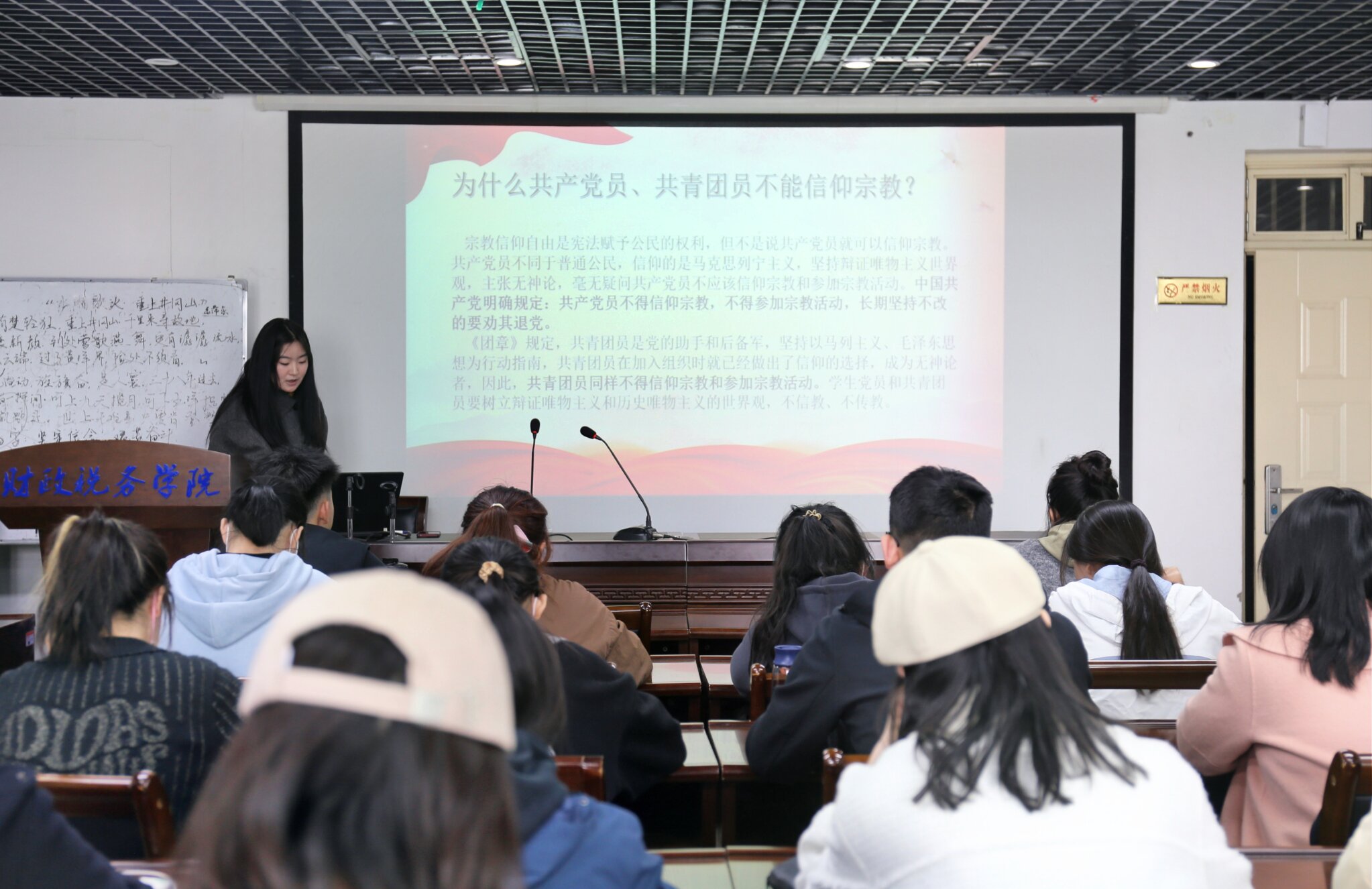 培训中,主讲人围绕宗教展开了深入的讲解,向同学们详细介绍了当今世界宗教概况、宗教的起源发展、宗教的社会作用等基本知识,详细讲解了我国的宗教政策,教同学们如何甄别邪教组织、区分宗教信仰与封建迷信。她还特别强调了坚定理想信念、树立马克思主义宗教观对于青年学生成长成才的重要性,鼓励同学们以客观正确的态度认识宗教。