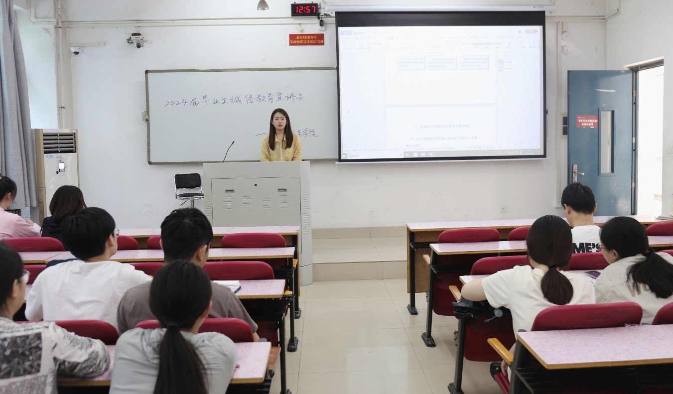 为进一步落实国家助学贷款政策,确保2024届贷款毕业生离校前、后办理助学贷款相关手续工作的顺利进行,增强毕业生的诚信意识和责任意识,发挥资助育人功效。williamhill英国于5月8日中午在第一教学楼202教室举办资助政策“两节课”——2024届毕业生诚信和金融安全教育宣讲会。宣讲会由资助专管员孟戈主讲,2024届贷款毕业生积极参加。